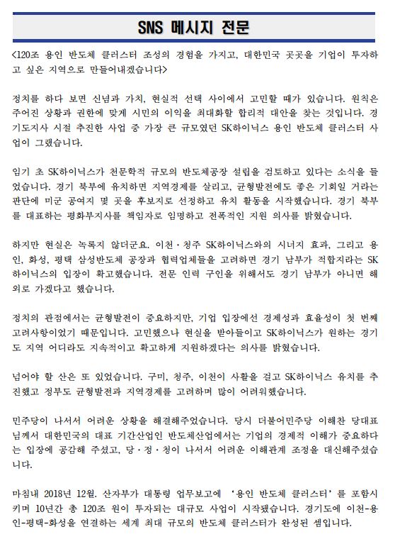 [보도자료] 더불어민주당 선대위 현안대응TF, 이재명 후보 '유능한 경제대통령' 세 번째 시리즈, '120조 원 규모 용인 반도체 클러스터' 성과 공개