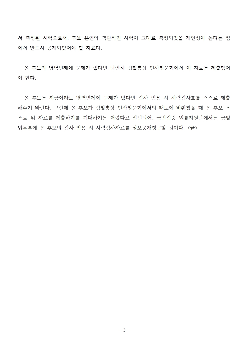 [보도자료] 더불어민주당 선대위 국민검증법률지원단, 윤석열 후보 부동시 군 면제 의혹 규명 위한 검사 임용 시 신체검사표 등 정보공개청구