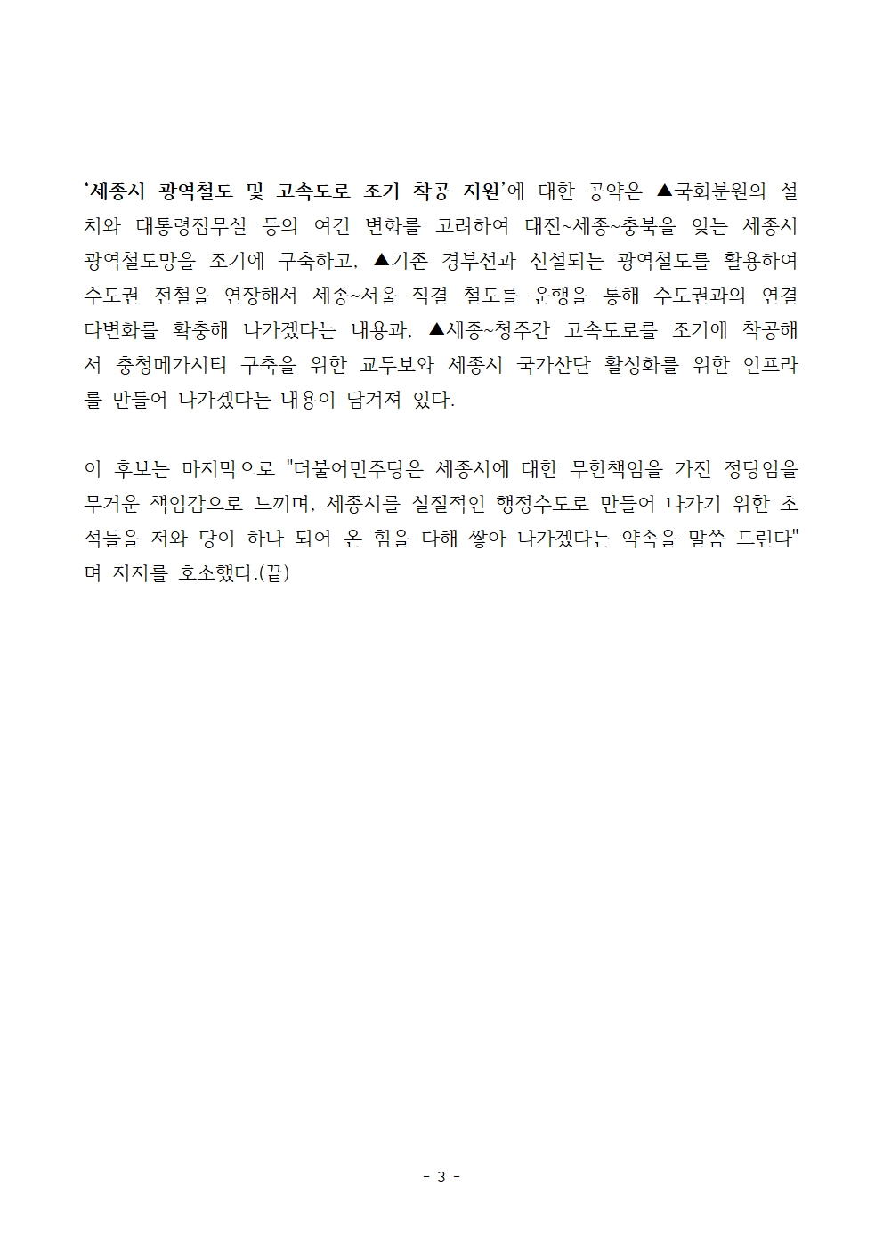 [보도자료] 더불어민주당 선대위 정책본부, 세종 6대 공약 발표