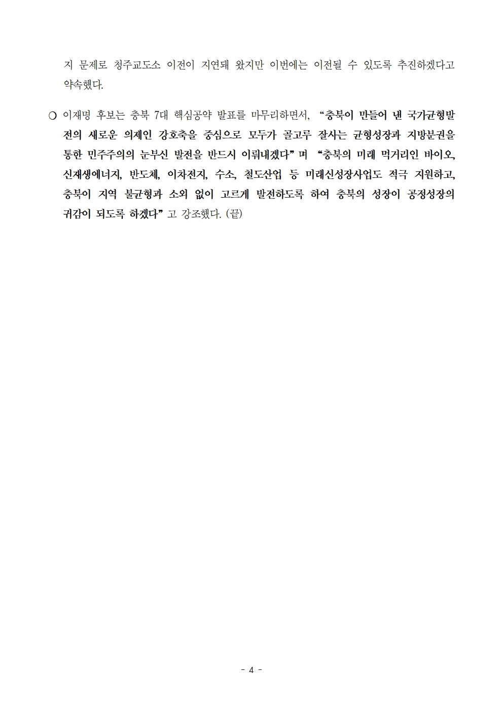 [보도자료] 더불어민주당 선대위 정책본부, 충북 7대 공약 발표