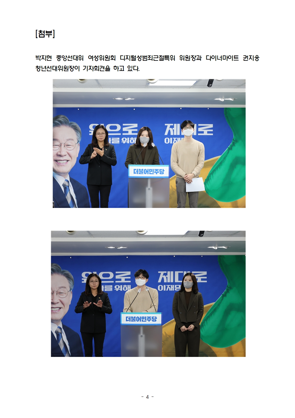 [보도자료] 중앙선대위 여성위원회 · 다이너마이트 청년선대위, 윤석열 캠프 메시지팀 불법촬영 혐의 관련 공동 기자회견
