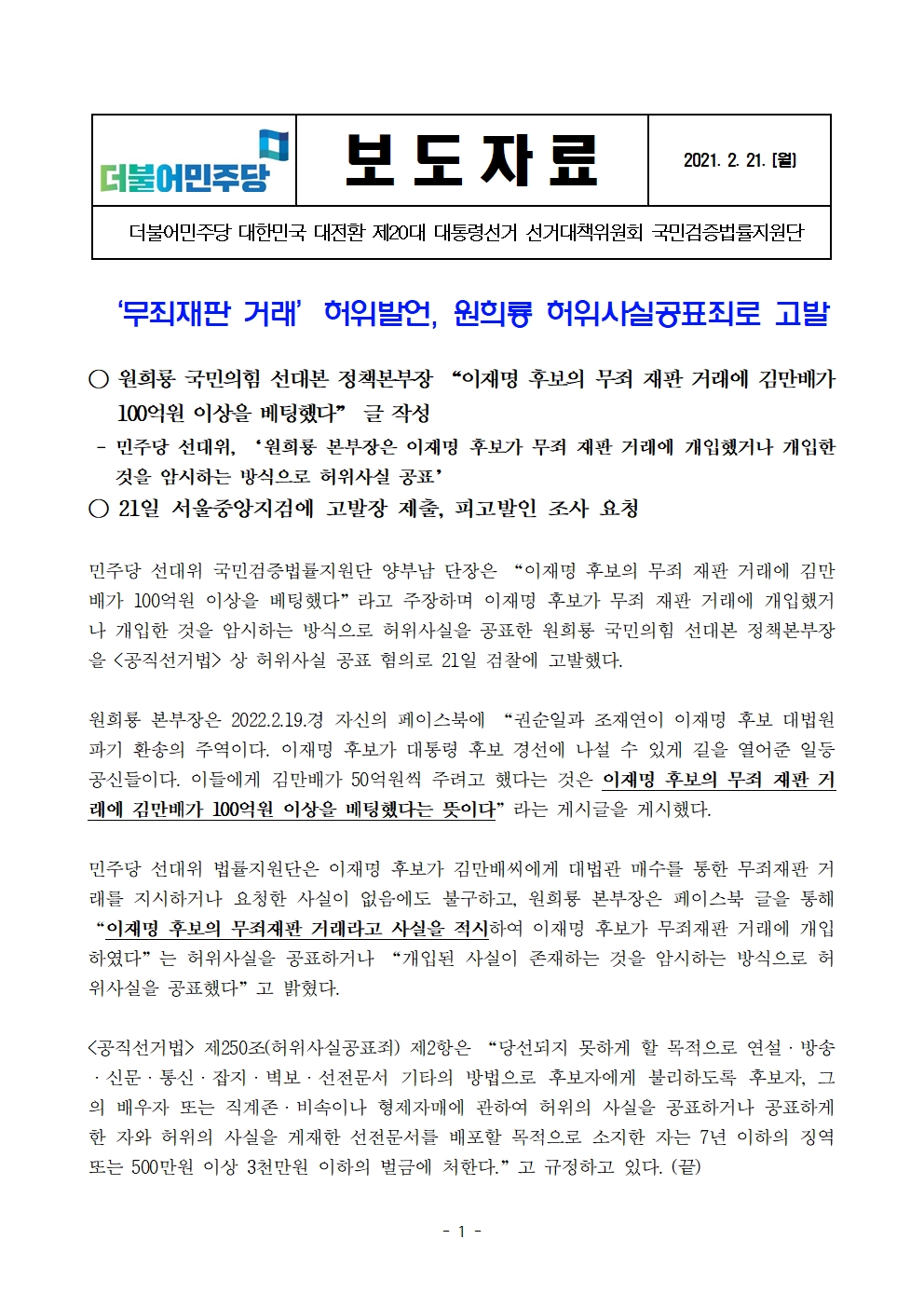 220221_‘무죄재판거래’허위발언_원희룡_허위사실공표죄_혐의고발_보도자료.pdf