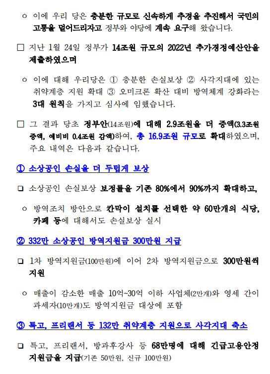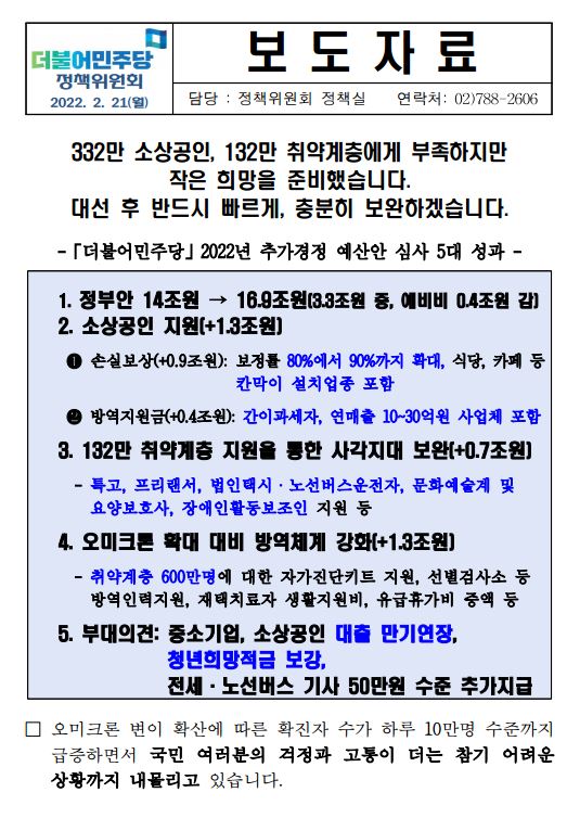 [보도자료] 더불어민주당 정책위원회, 2022년 추가경정 예산안 심사 5대 성과