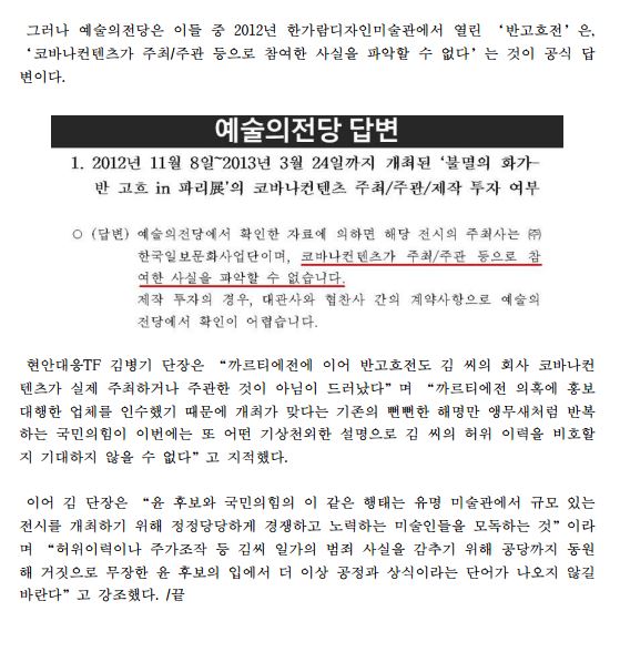 [보도자료] (더불어민주당 선대위 현안대응TF) 김건희 씨 '불멸의 화가, 반고흐 in 파리전' 전시이력도 '거짓'...예술의전당 답변서 드러나