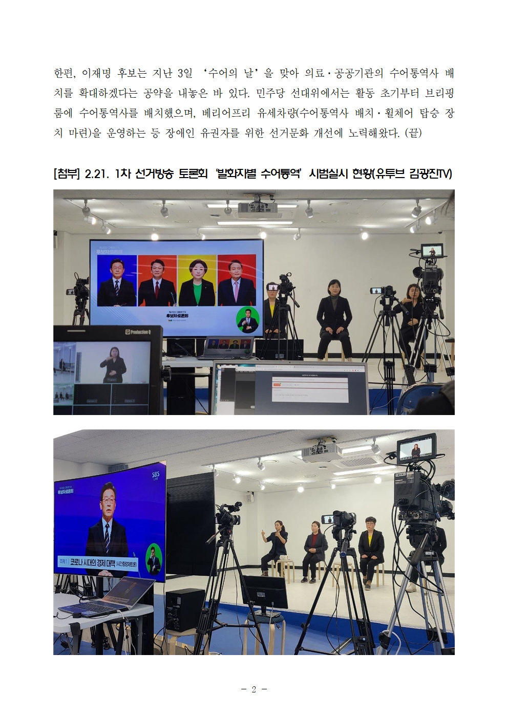 [보도자료] 더불어민주당 다이너마이트 청년선대위, 농인을 위한 선거방송 토론회, '발화자별 수어 통역 배치' 첫발