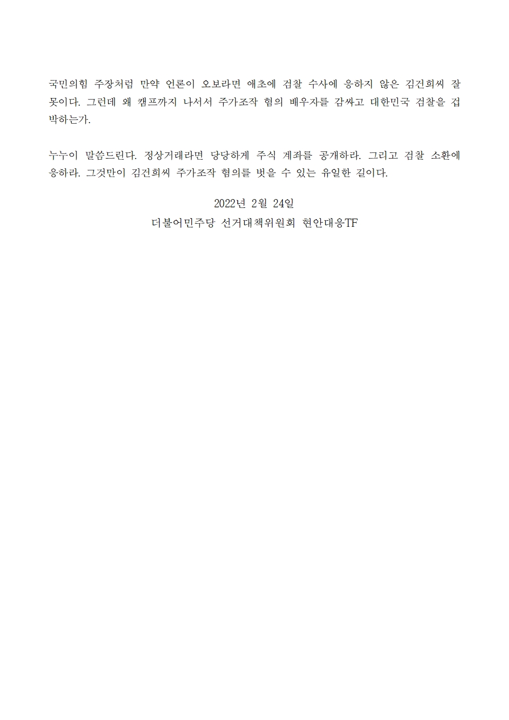 220224_현안대응_TF_김건희_주가조작_범죄소명은_재판장에서나_당당하면_주식계좌_공개하라_성명서.pdf