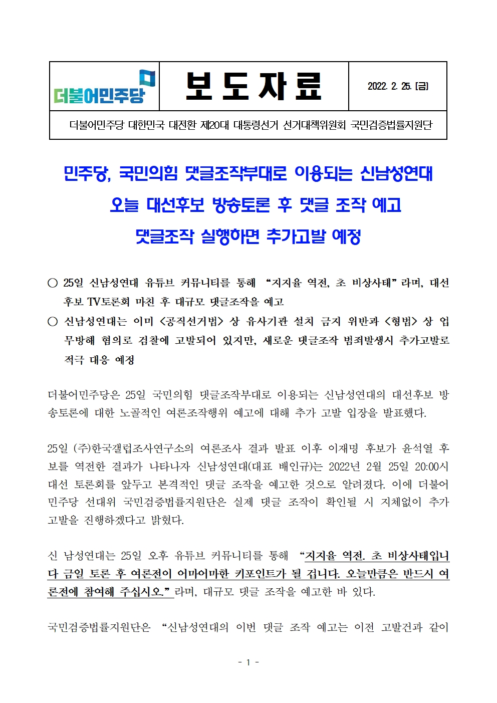 220225_보도자료_더불어민주당_신남성연대_댓글조작_예고,_추가고발_예정.pdf