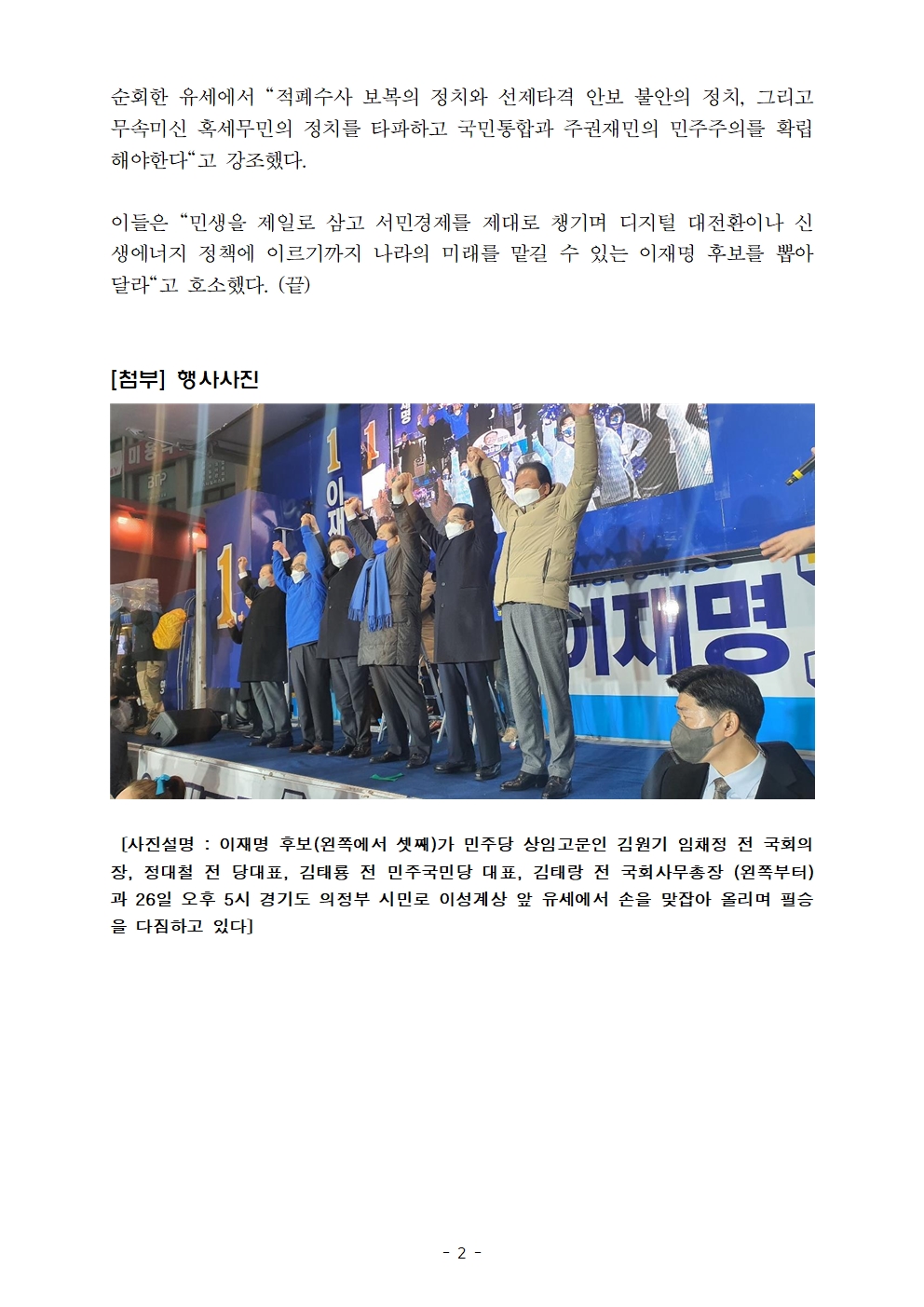 [보도자료] 더불어민주당 선대위 상임고문단, 후보 의정부 유세 동참하여 통합정치를 위한 개혁입법 추진 촉구