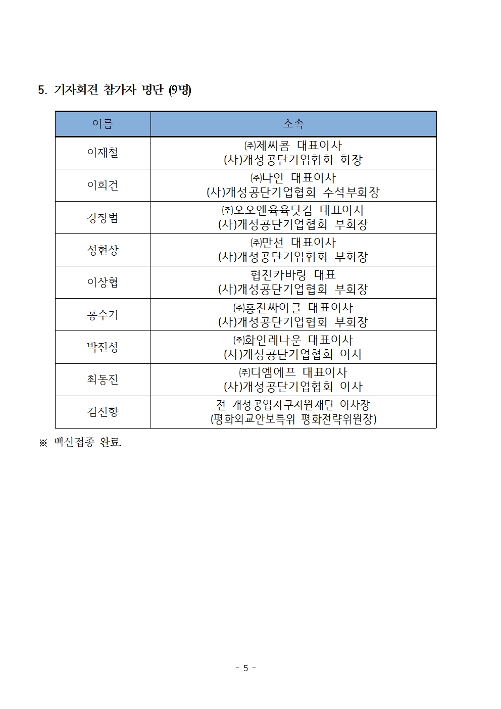 [보도자료] 더불어민주당 선대위 평화외교안보특별위원회, 개성공단 기업인 후보 지지선언