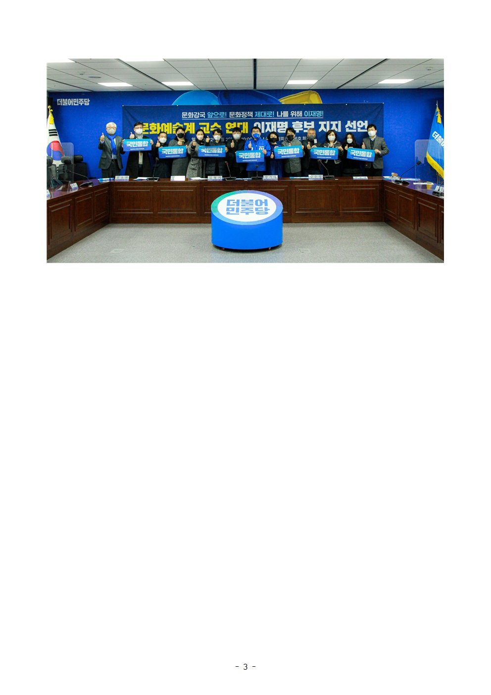 [보도자료] 더불어민주당 선대위 국가비전·국민통합위원회, 문화예술계 교수 및 예술인 연대 80명, 후보 지지선언
