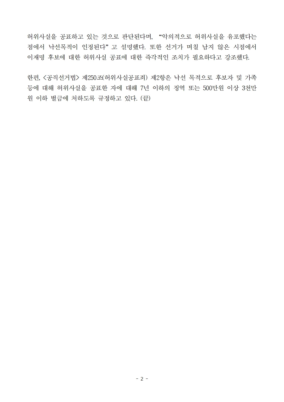 [보도자료] 더불어민주당 선대위 국민검증법률지원단, 보수커뮤니티에서 ‘팔공산 굿판’ 악의적 유포, 허위사실 즉각 고발