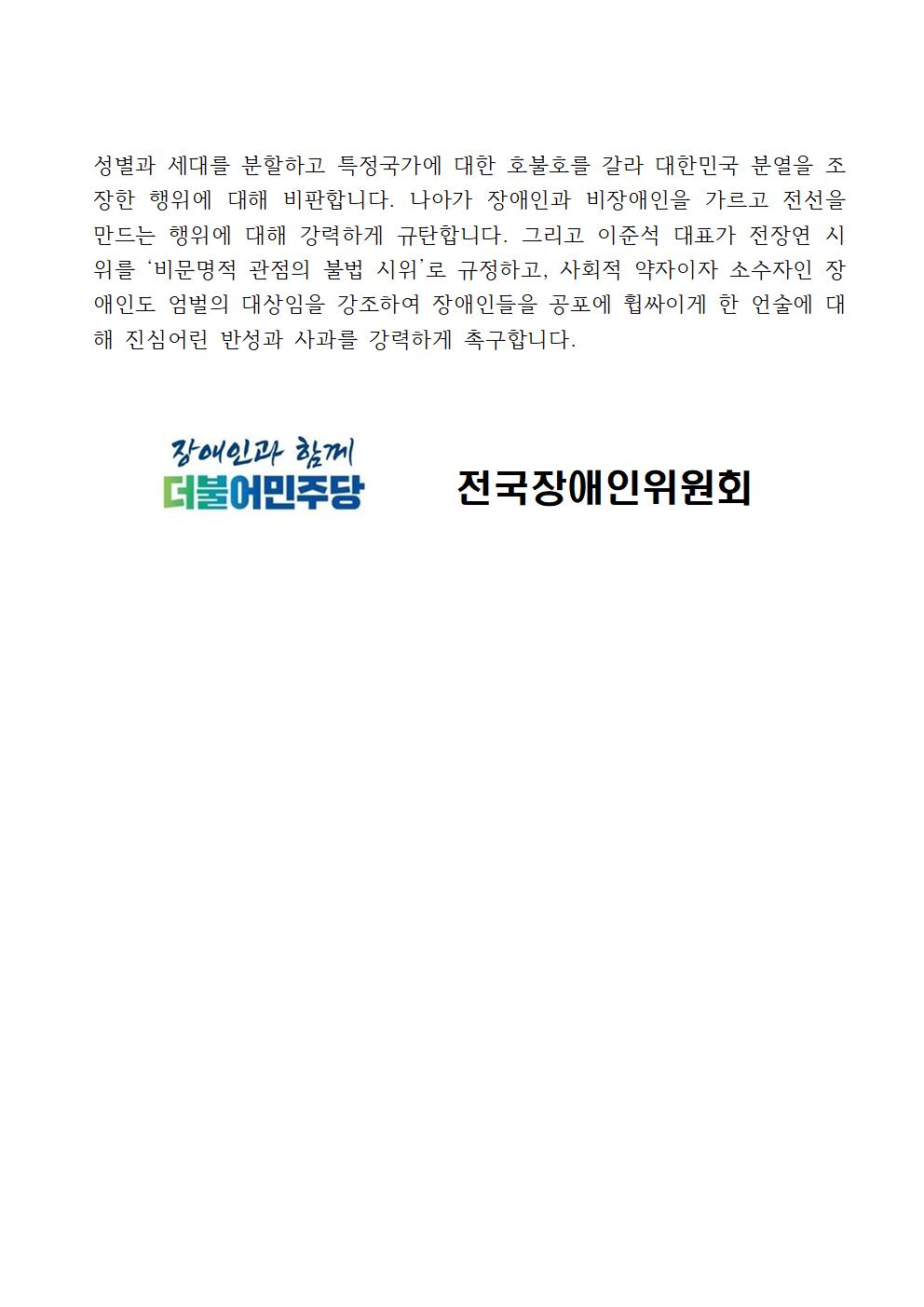 [보도자료] 더불어민주당 전국장애인위원회, 국민의힘 이준석 당대표의 갈라치기, 이번에는 장애인인가!