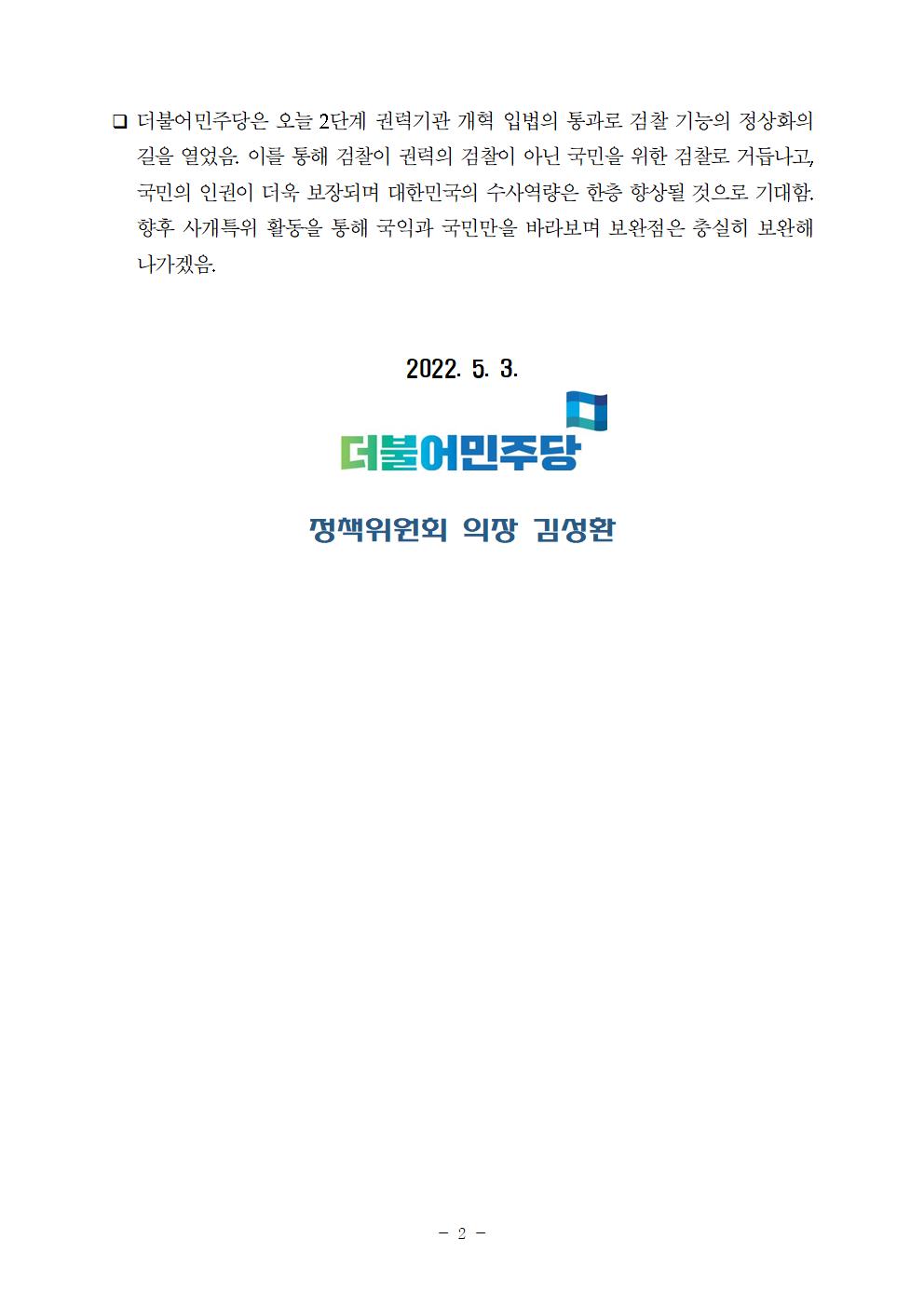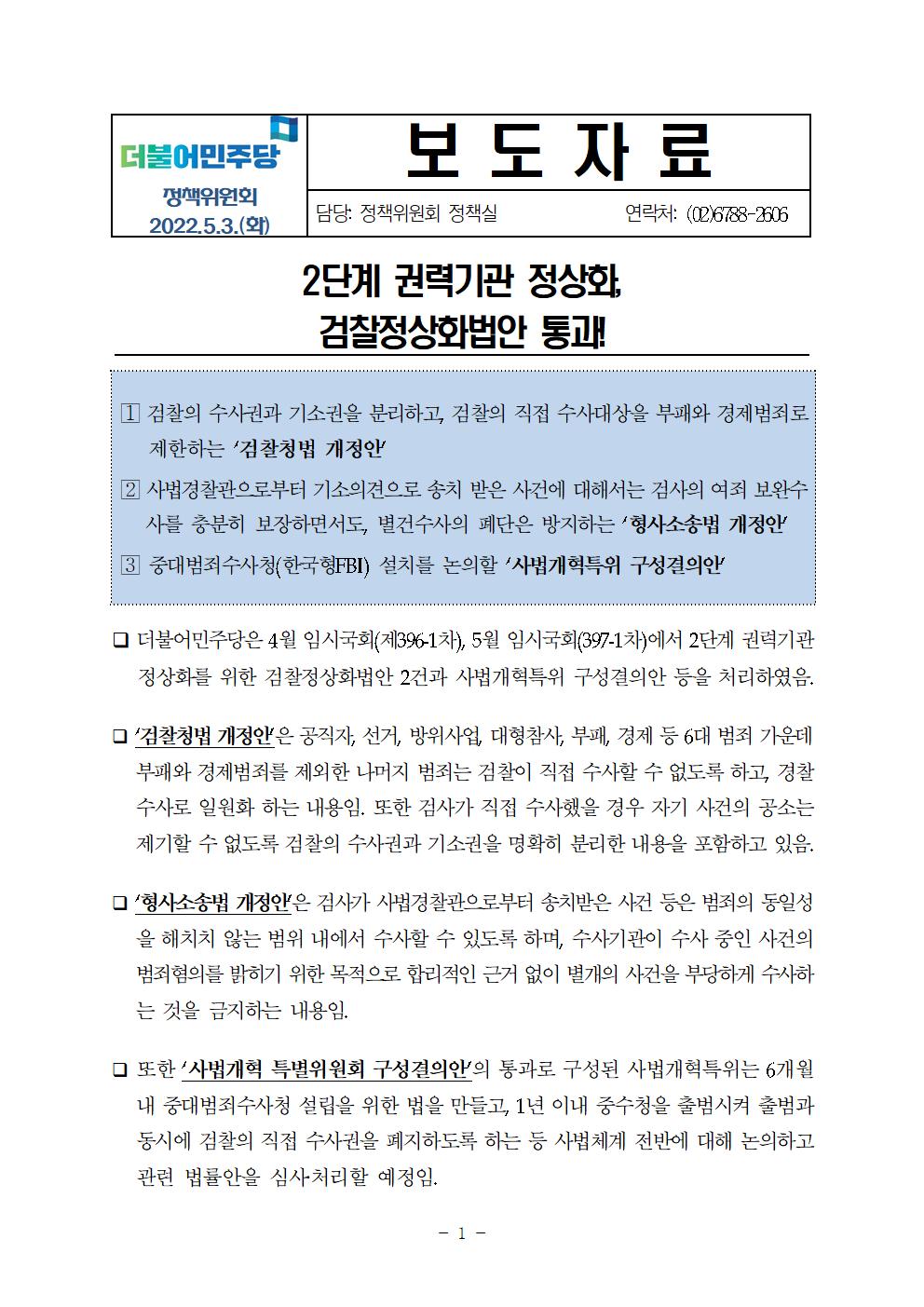 [보도자료] 더불어민주당 정책위원회, 5월 임시국회 입법 성과