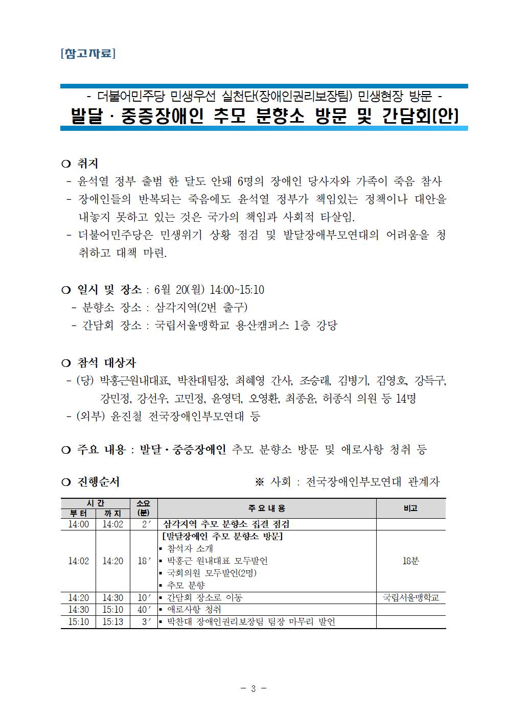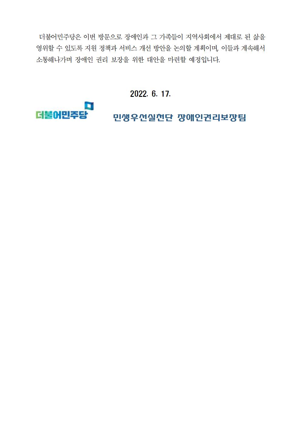 [보도자료] 더불어민주당 민생우선실천단 장애인권리보장팀 현장 방문