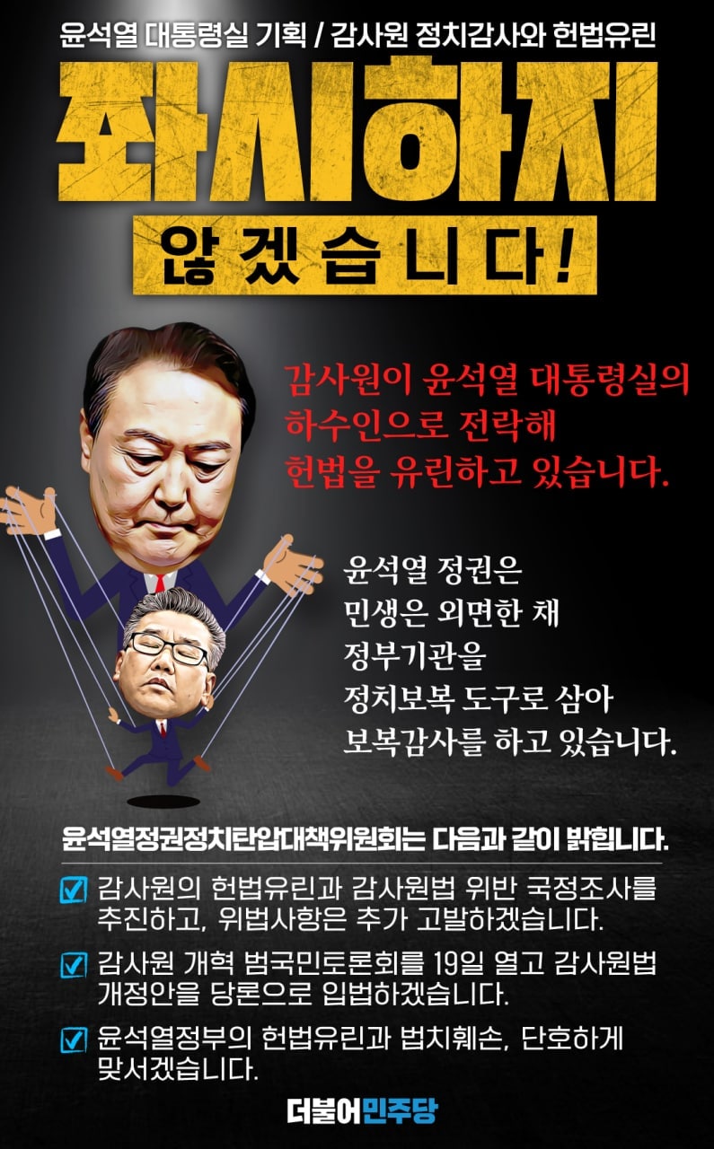 정치보복 위해 위법도 불사하는 감사원, 윤석열 정부의 감사 농단입니다