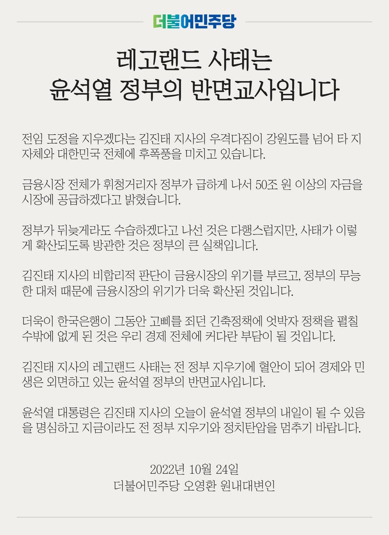 레고랜드 사태는 윤석열 정부의 반면교사입니다