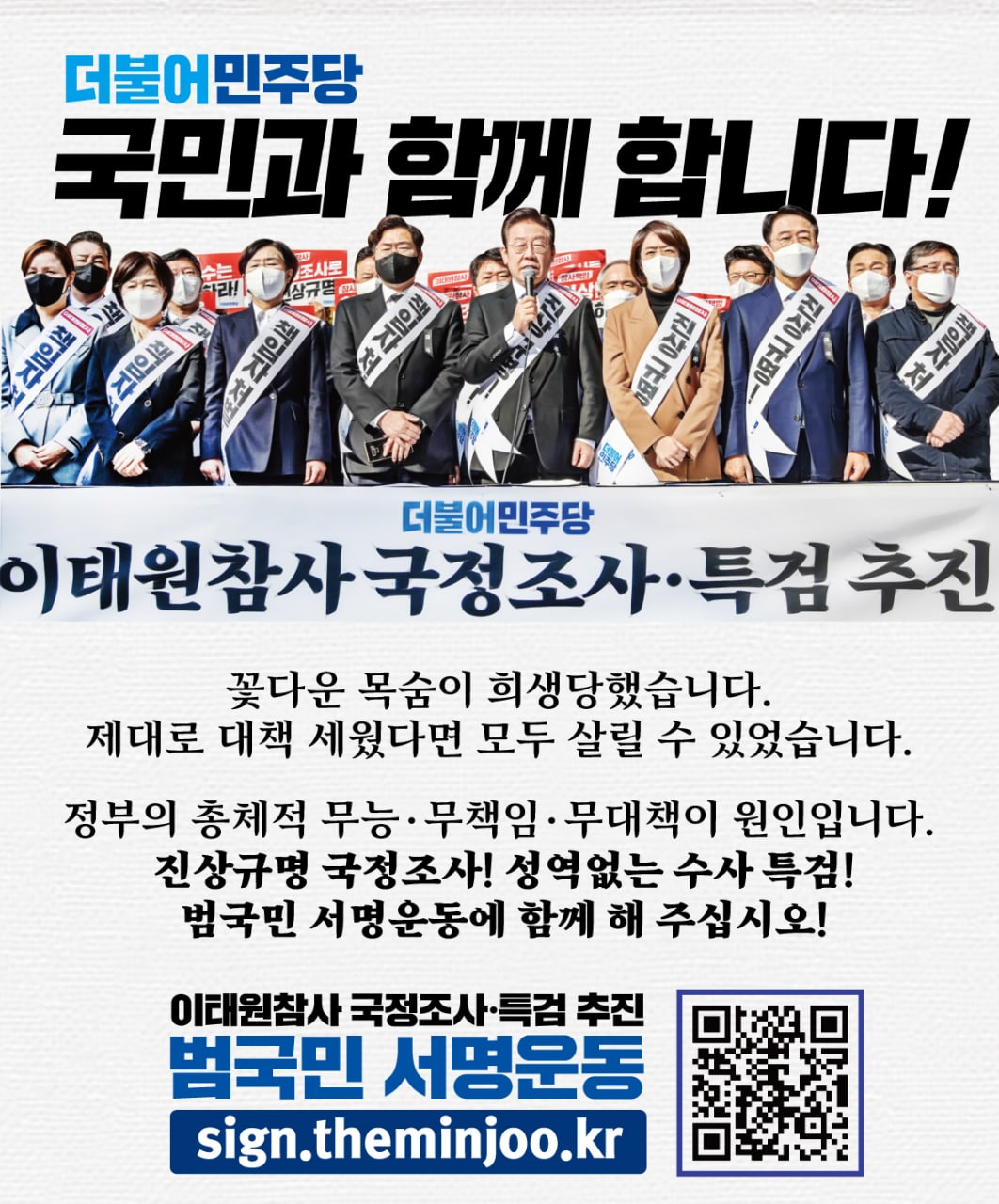 이태원참사 국정조사·특검 추진 범국민 서명운동