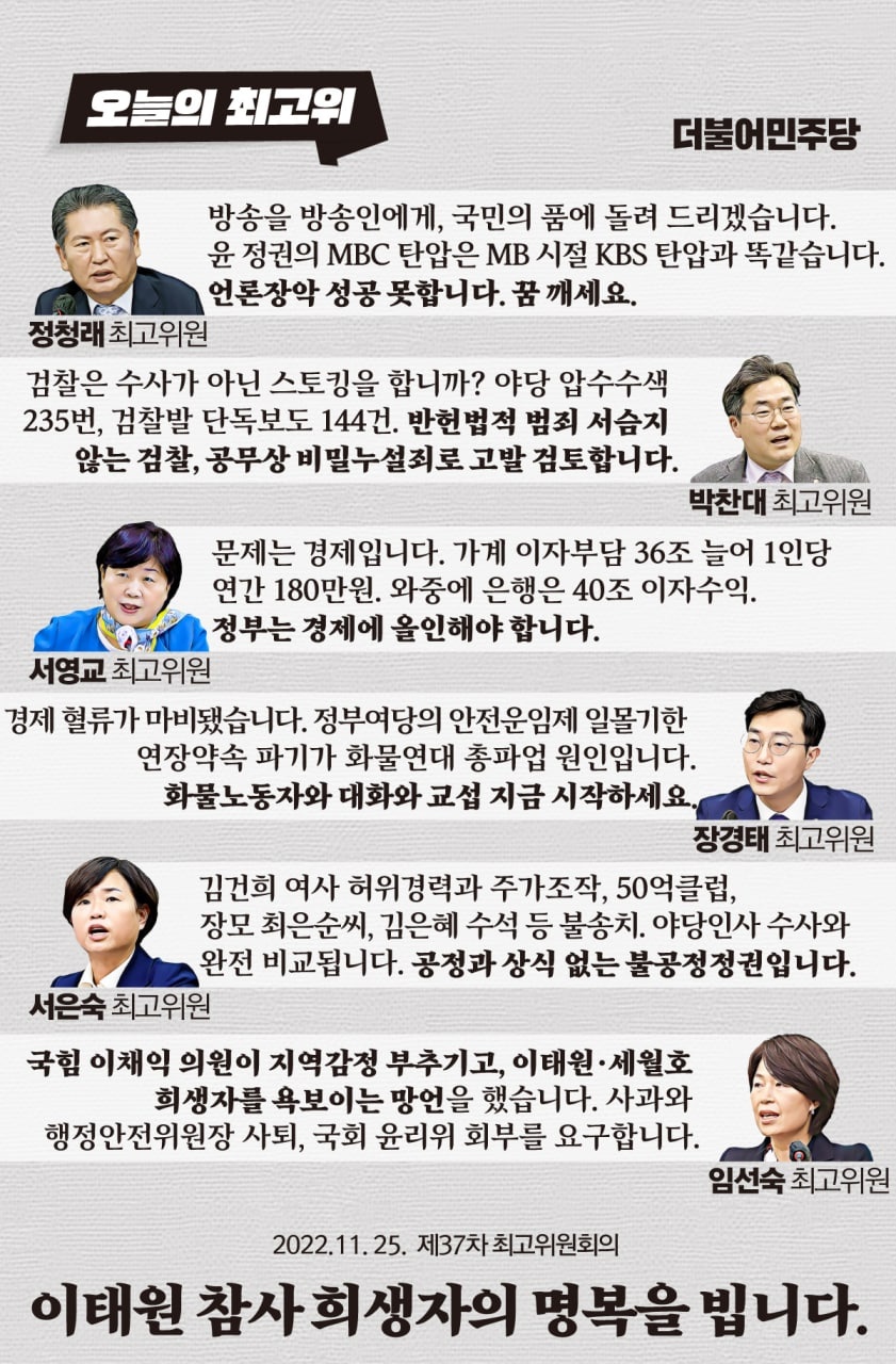 22.11.25 오늘의 한마디, 오늘의 최고위