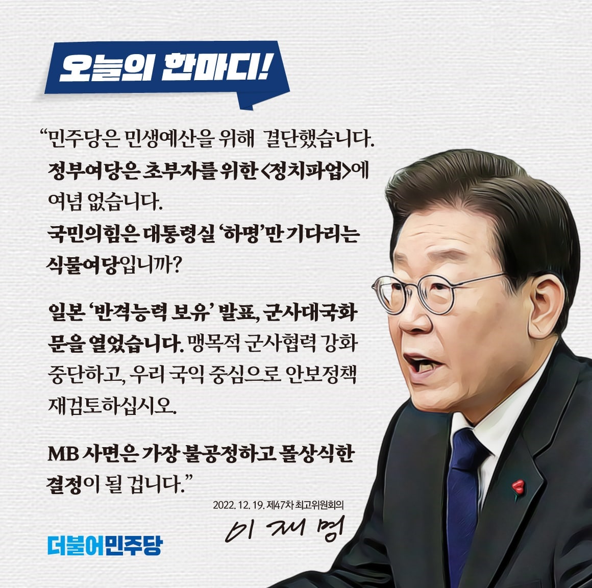 22.12.19 오늘의 한마디, 최고의 한마디