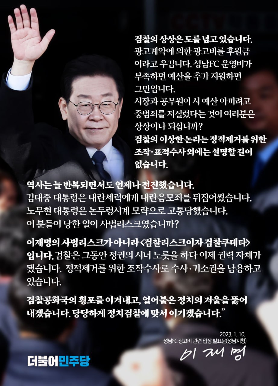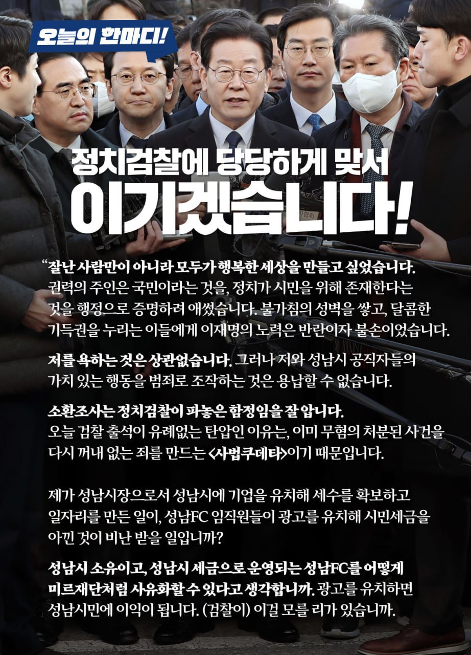 정치검찰에 당당하게 맞서 이기겠습니다!