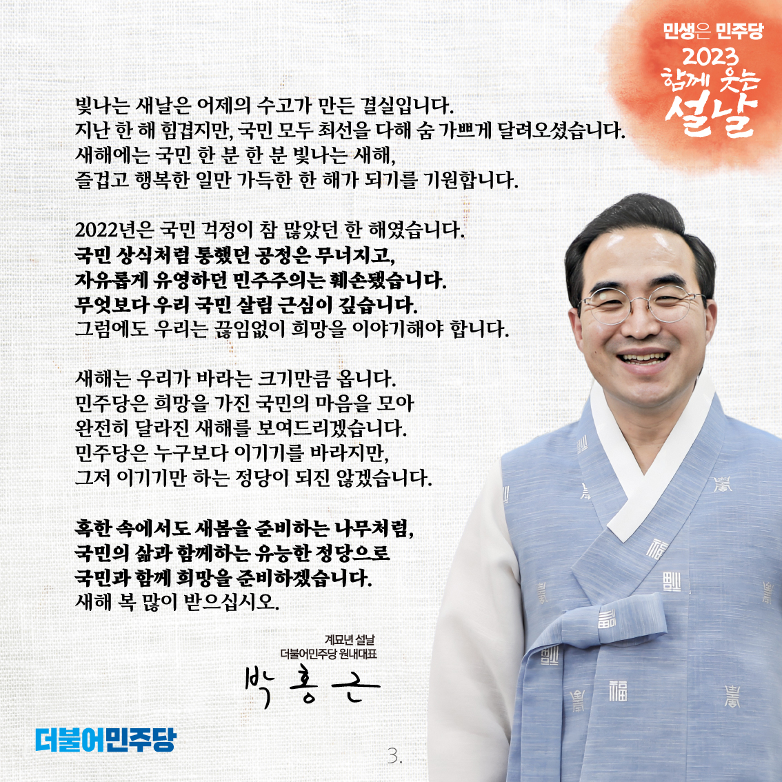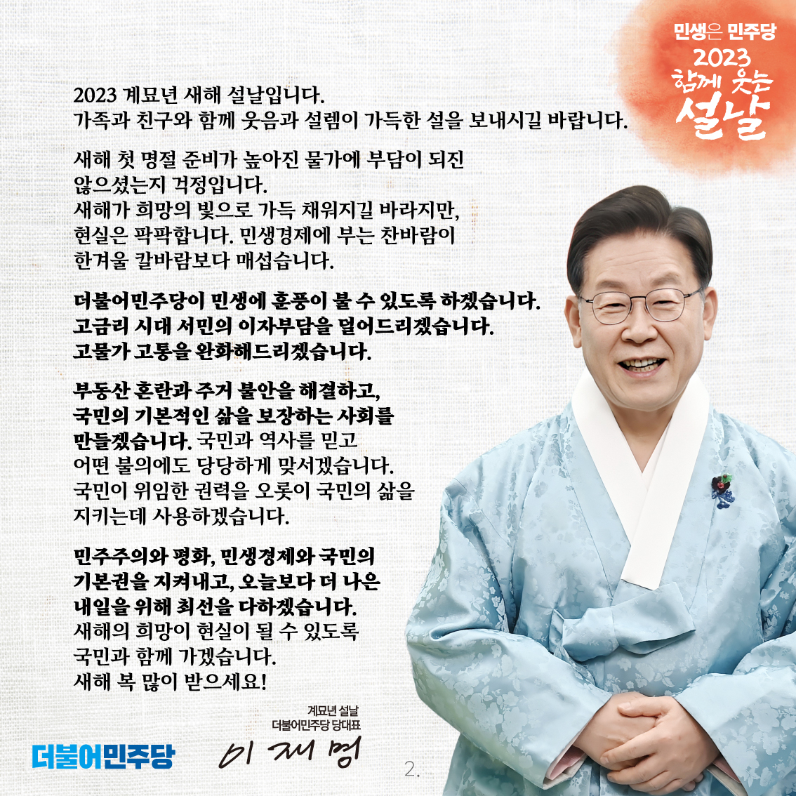 민생은 민주당 2023 함께 웃는 설날