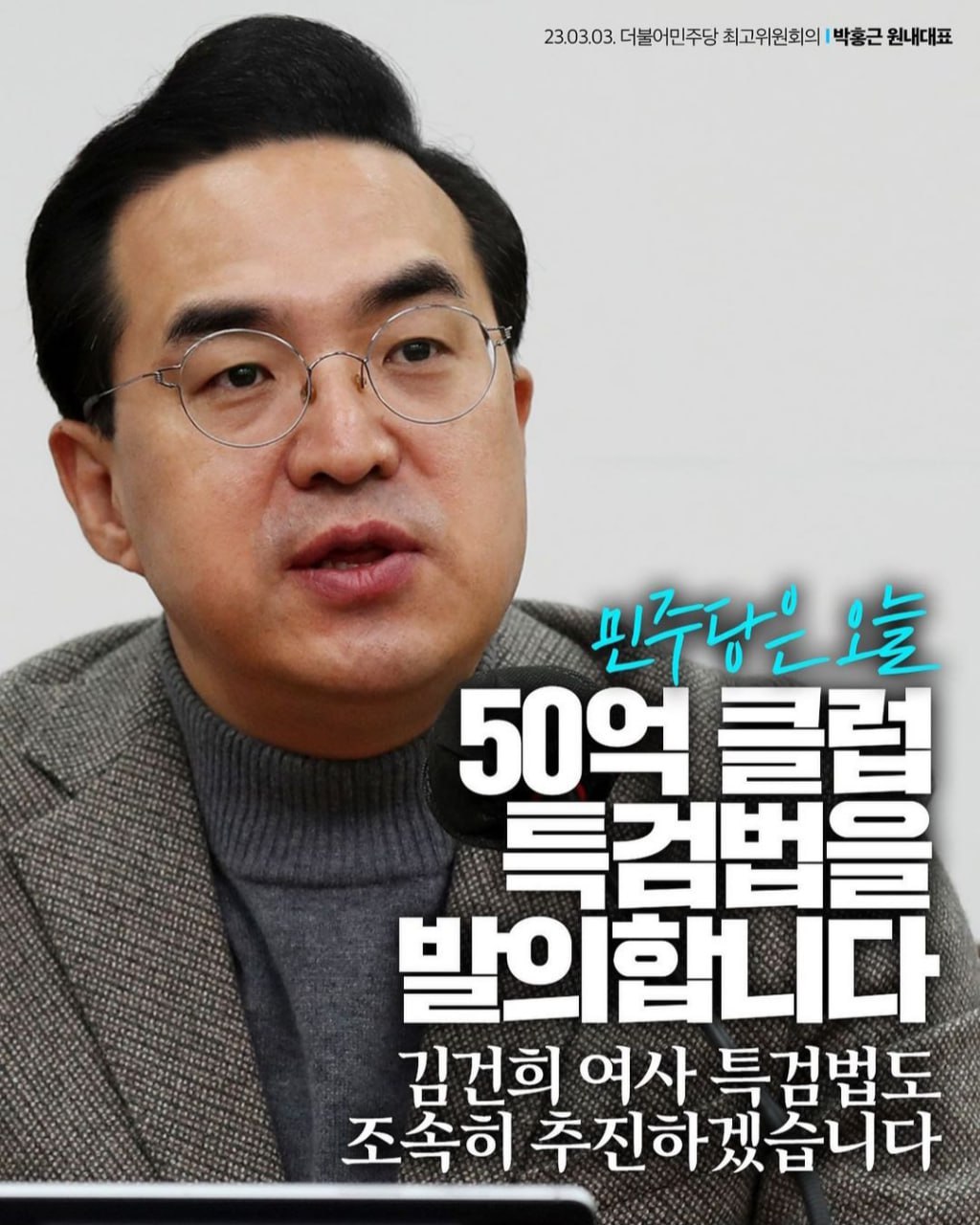 민주당은 오늘 50억 클럽 특검법을 발의합니다
