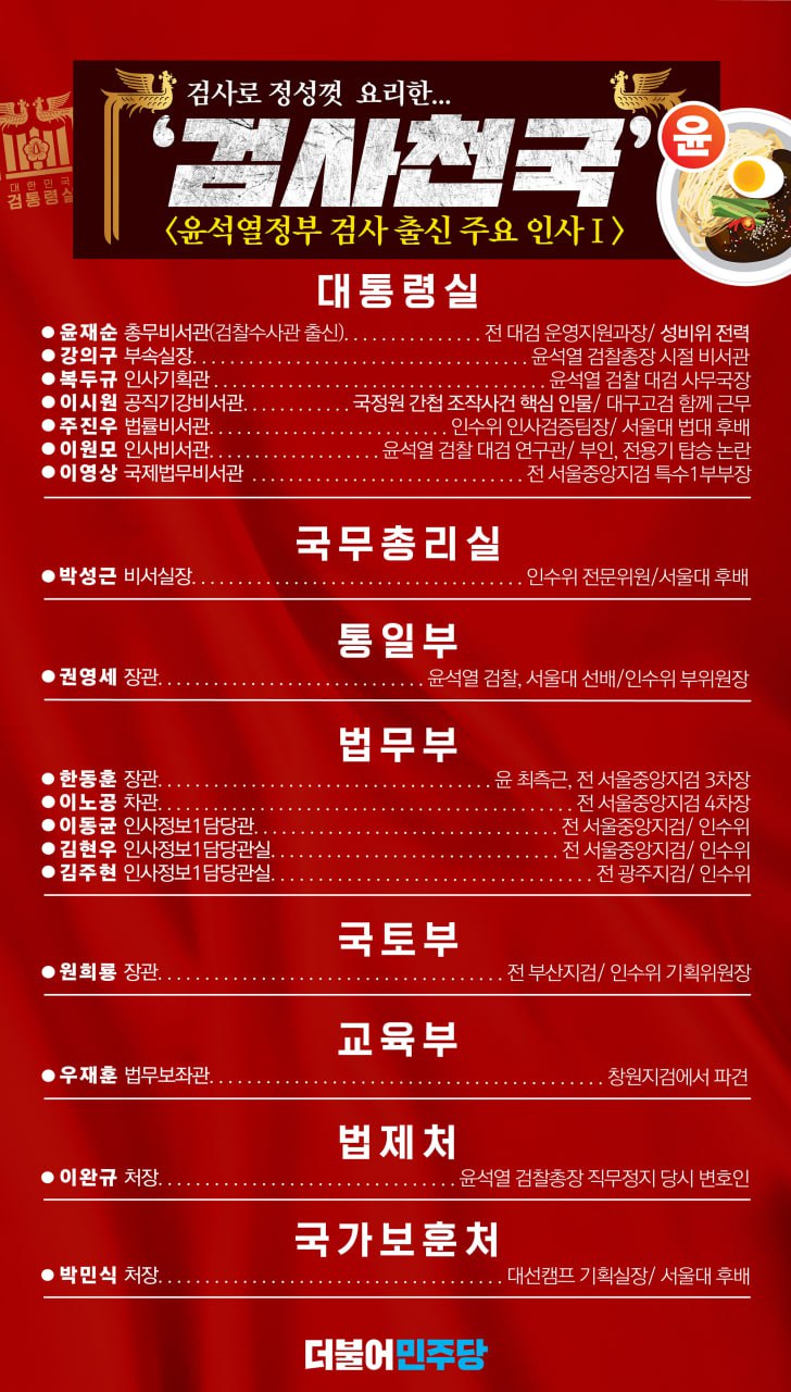 '검사천국' 윤석열정부 검사 출신 주요 인사