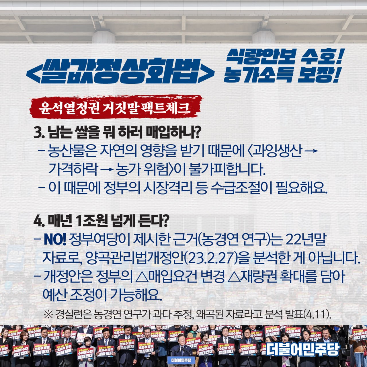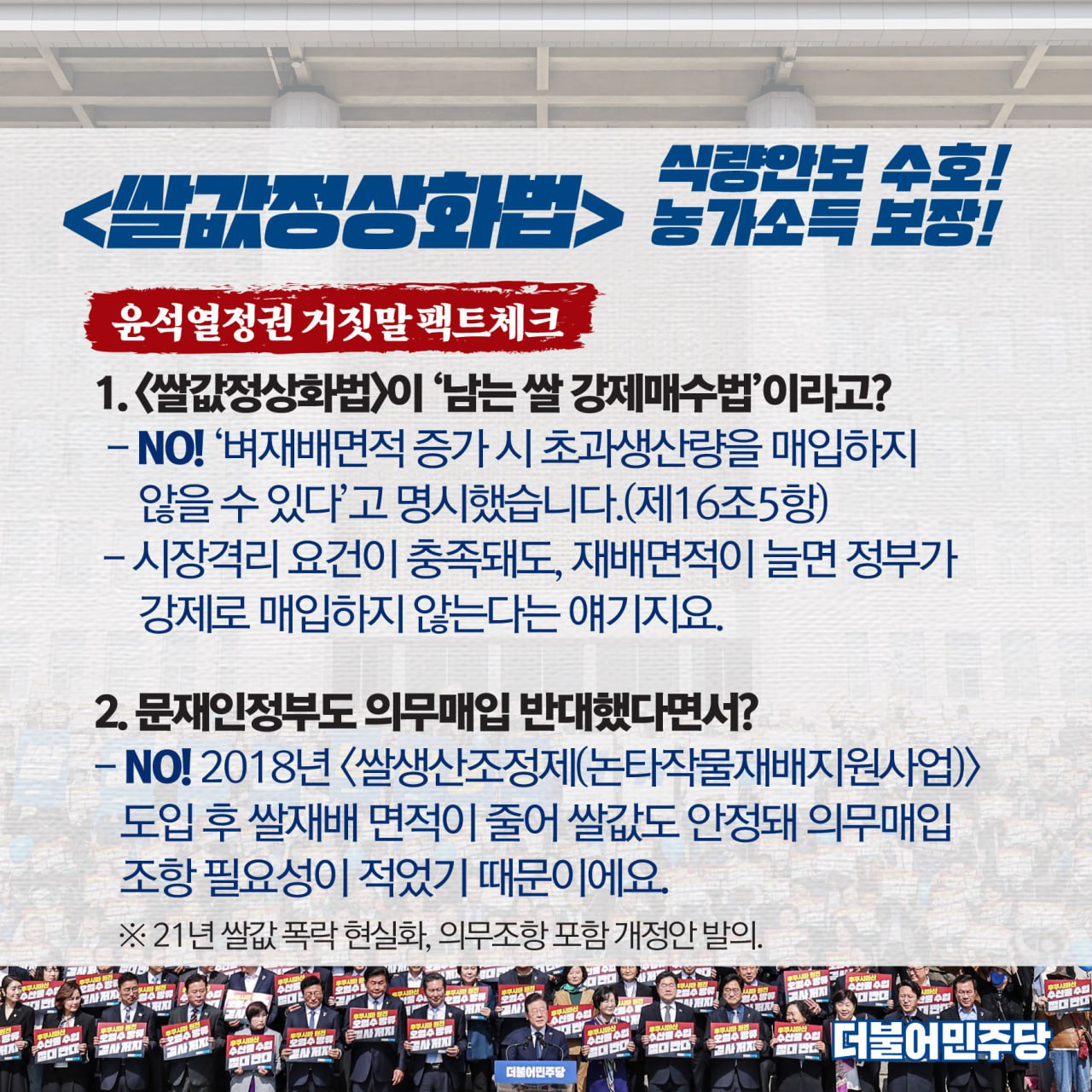 식량안보 수호! 농가소득 보장! 쌀값정상화법 윤석열정권 거짓말 팩트체크