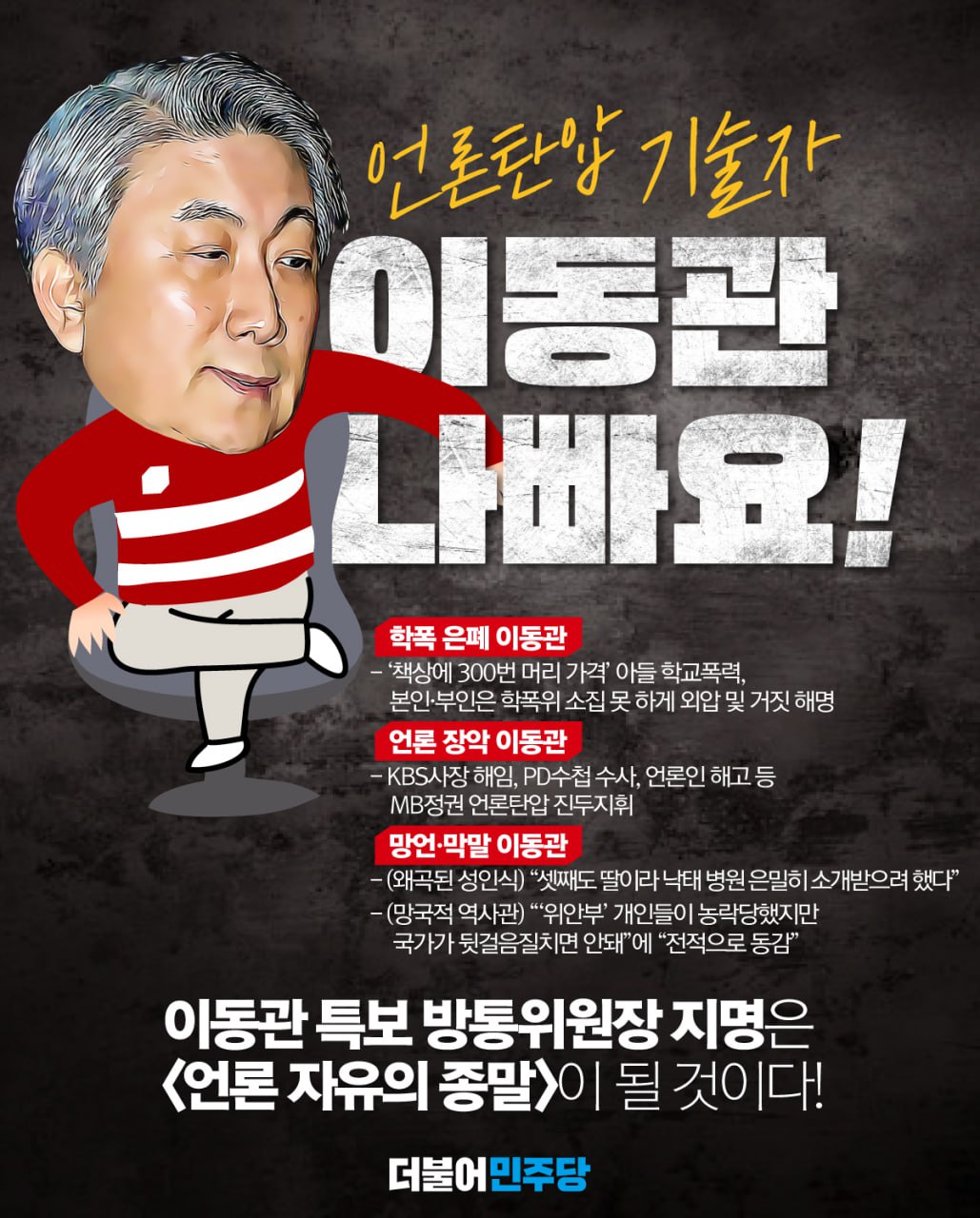 이동관 특보 방통위원장 지명은 "언론 자유의 종말"이 될 것이다!