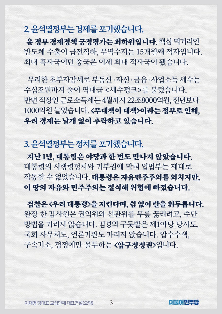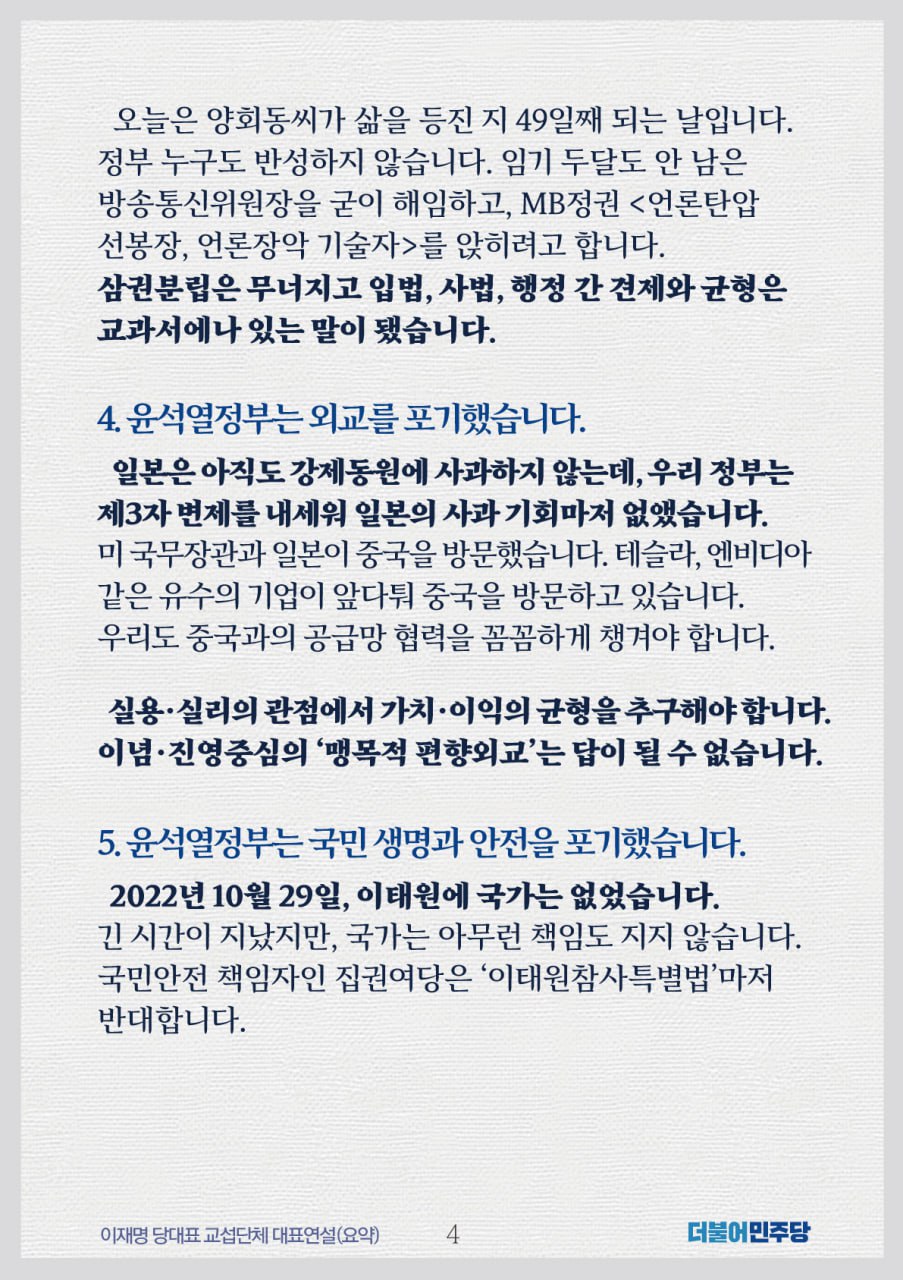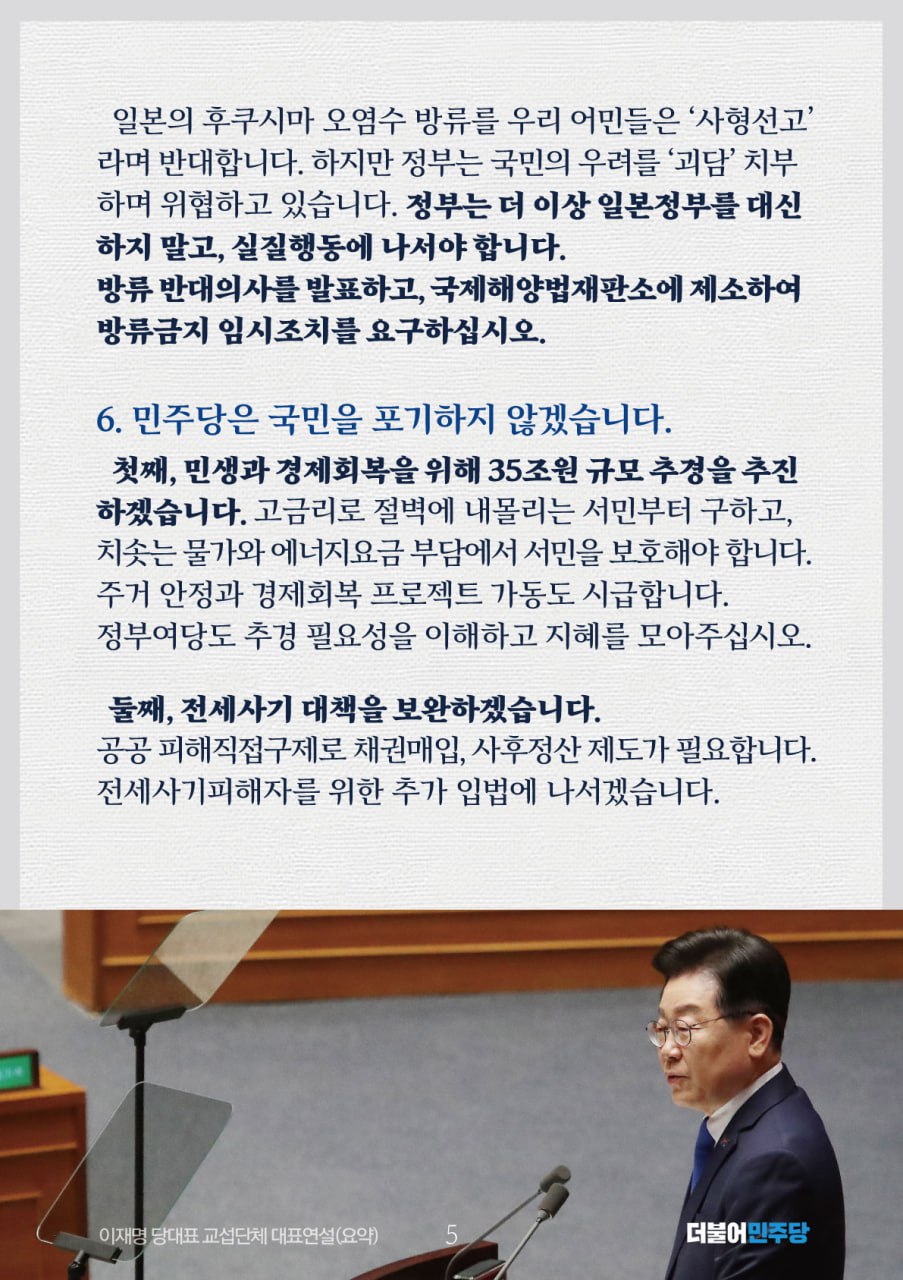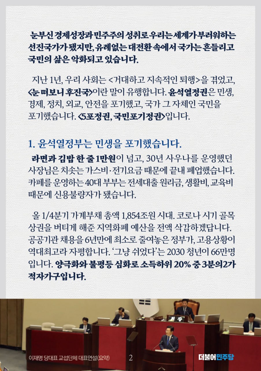 이재명 더불어민주당 당대표 교섭단체 대표연설