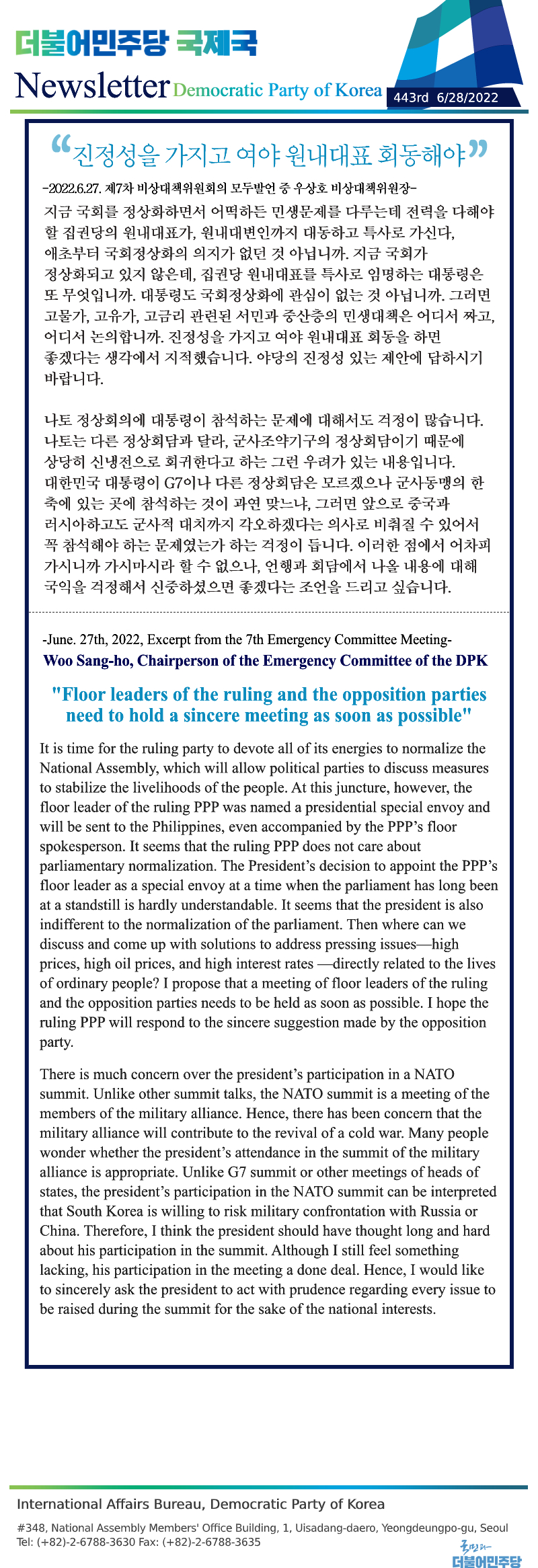 [443rd Newsletter] Excerpt from the 7th Emergency Committee Meeting