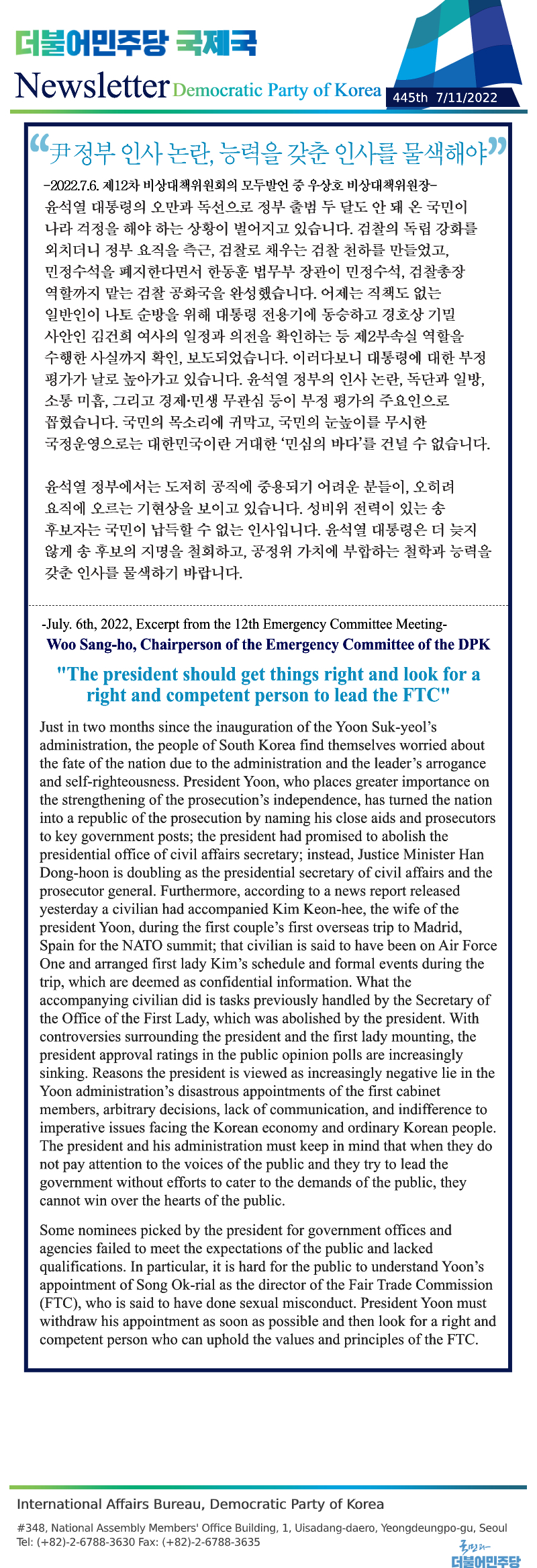 [445th Newsletter] Excerpt from the 12th Emergency Committee Meeting