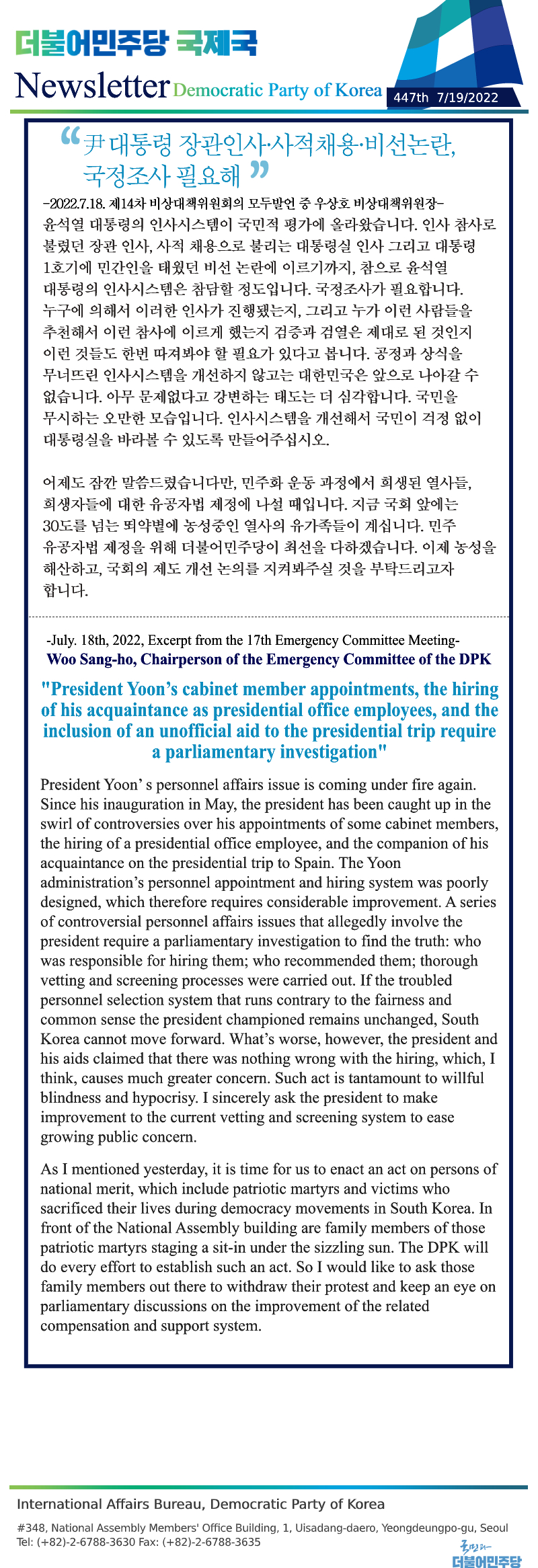 [447th Newsletter] Excerpt from the 17th Emergency Committee Meeting