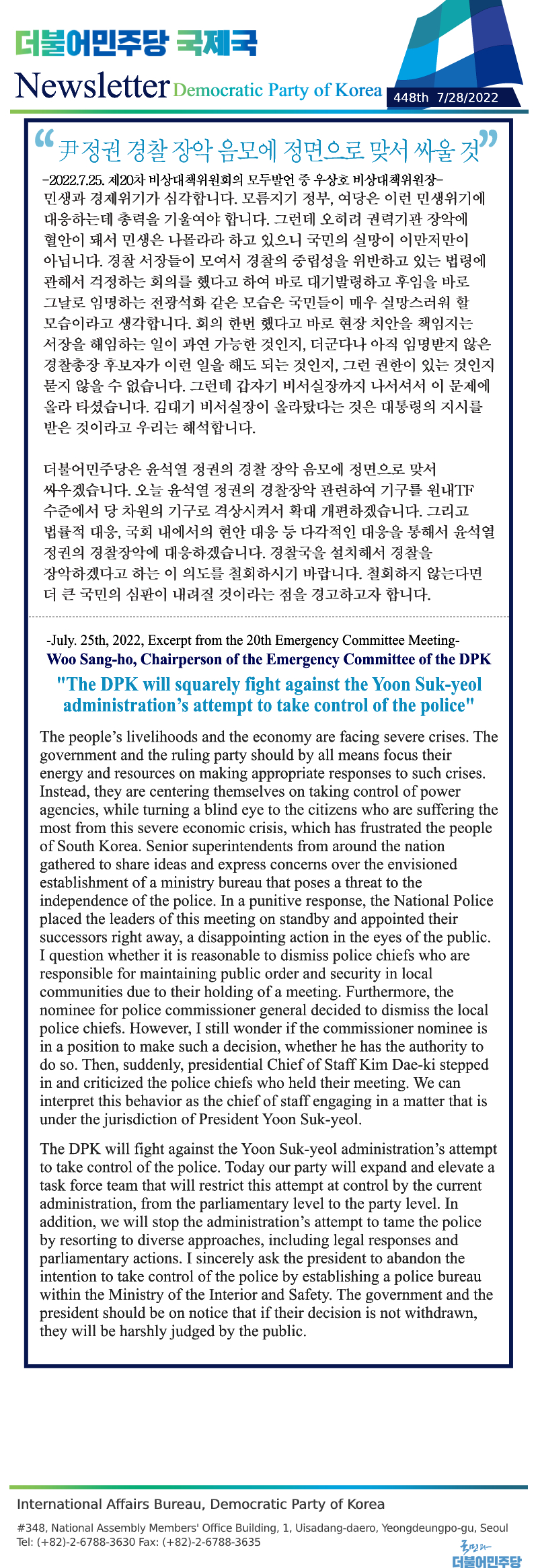 [448th Newsletter] Excerpt from the 20th Emergency Committee Meeting