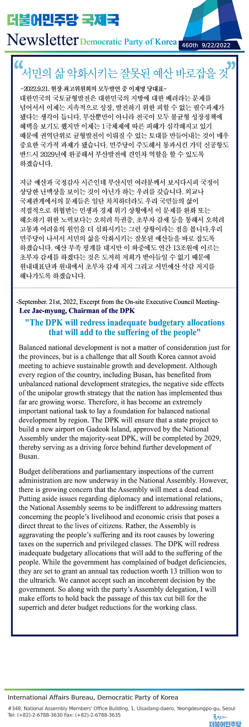 [461th Newsletter]Excerpt from the 15th Supreme Council Meeting