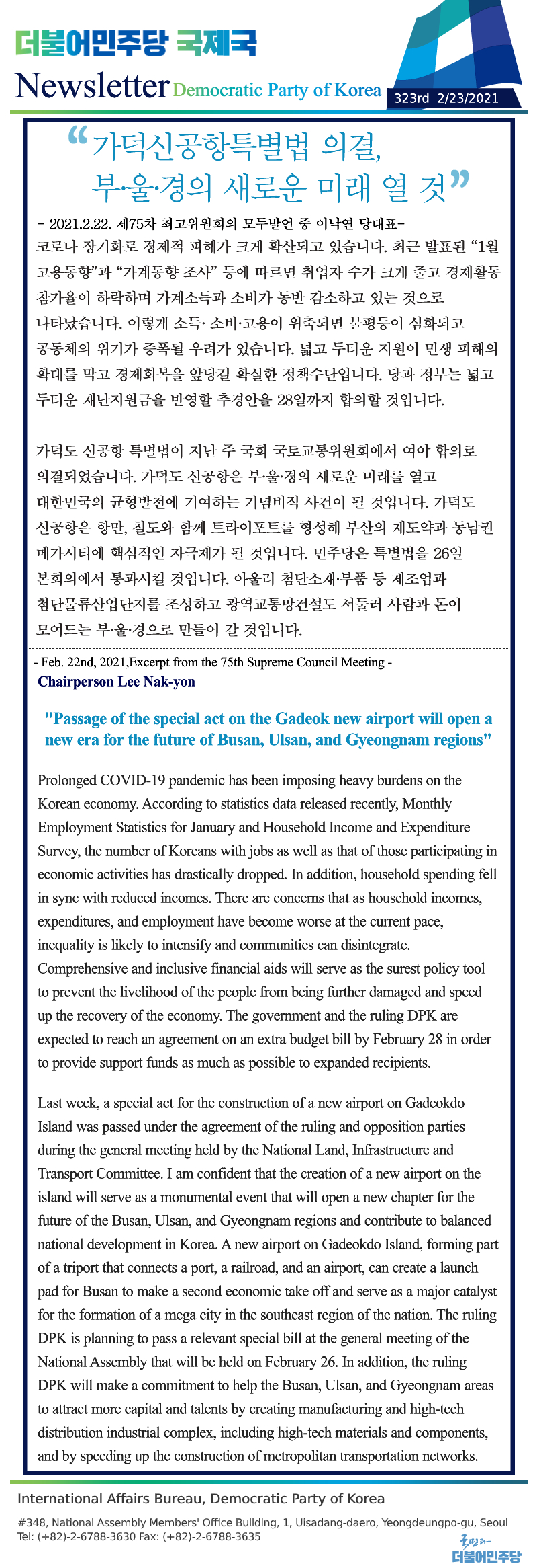 [322nd Newsletter] Excerpt from On-Site Supreme Council Meeting in Seoul