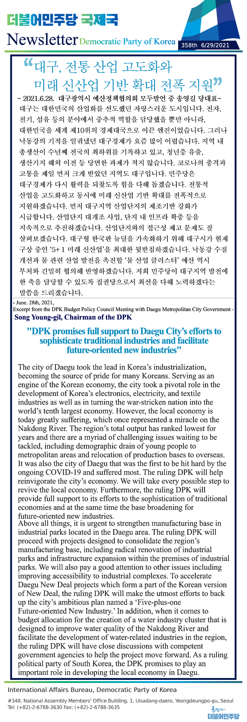 [359th Newsletter]Excerpt from the DPK Budget Policy Council Meeting in South Gyeongsang Province