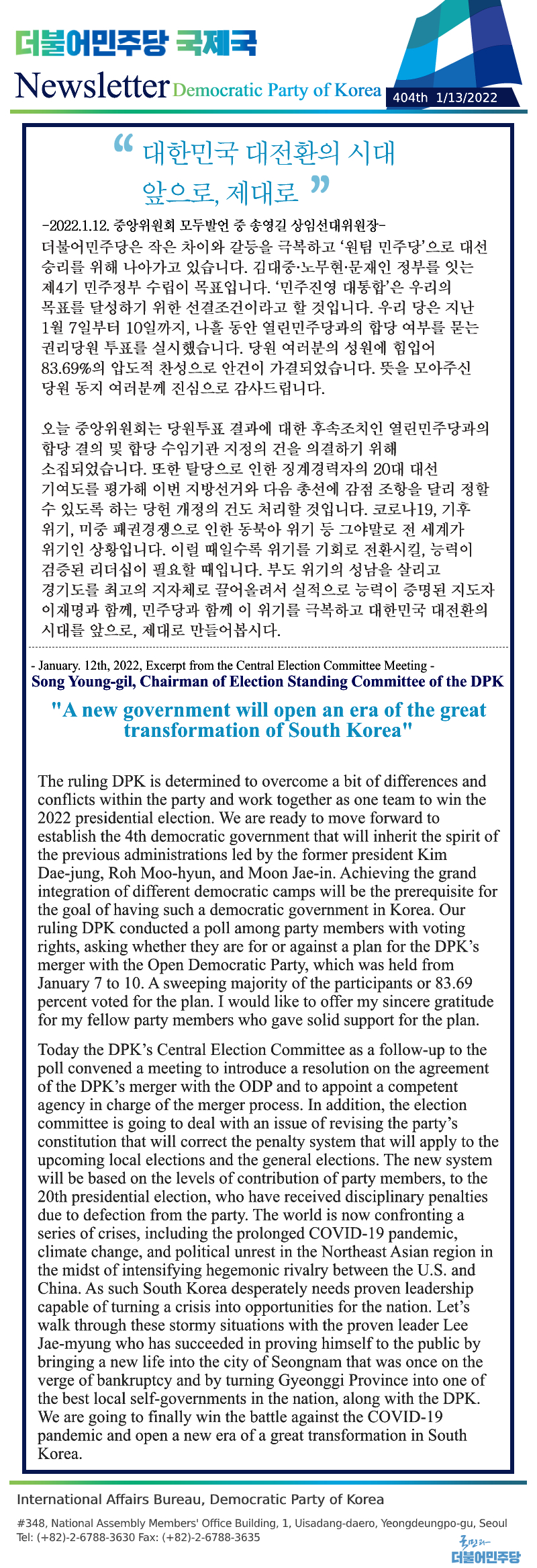 [403rd Newsletter]Excerpt from the 7th Central Election Committee Meeting