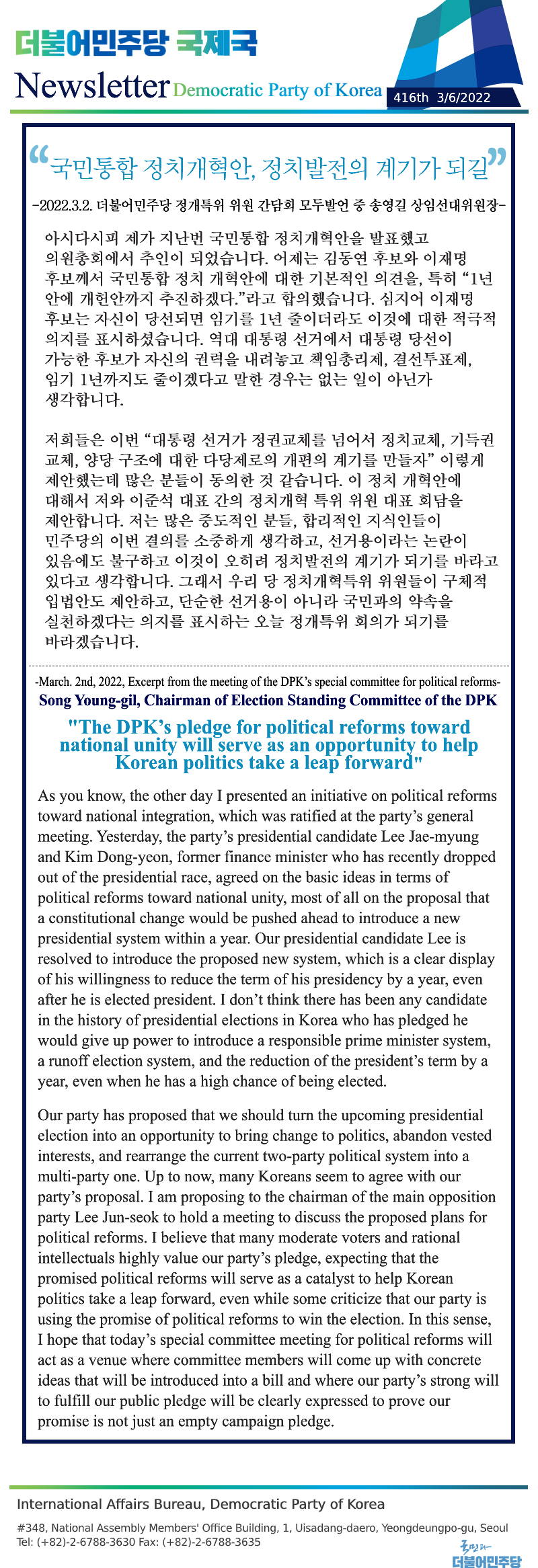 [416th Newsletter]Excerpt from the meeting of the DPK’s special committee for political reforms