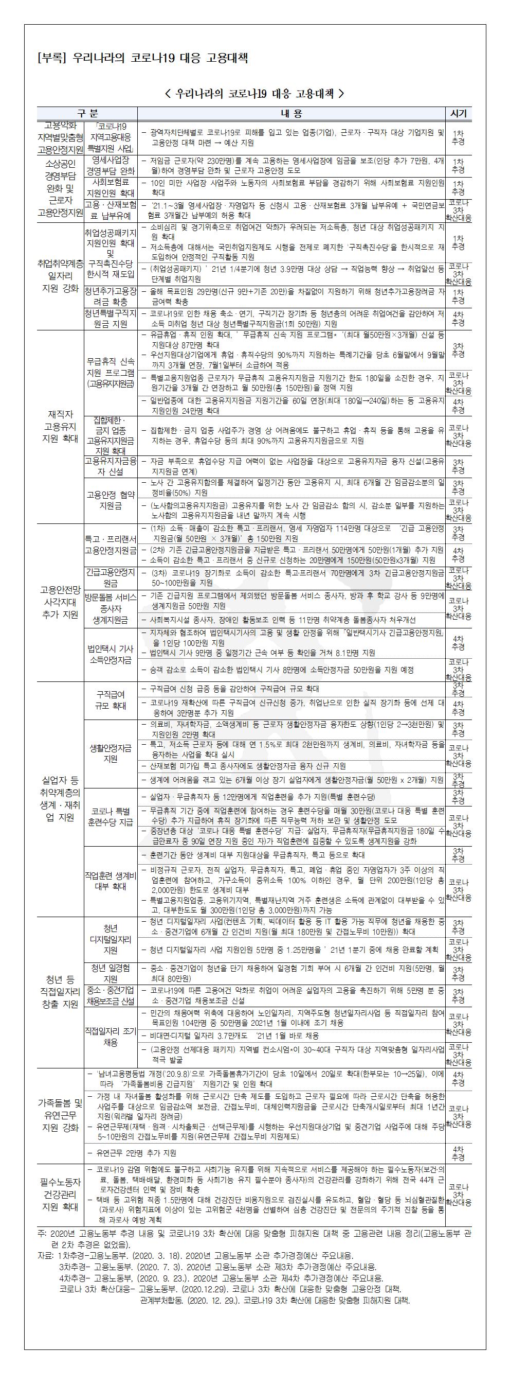 활 안정 및 노동시장 회복력 유지