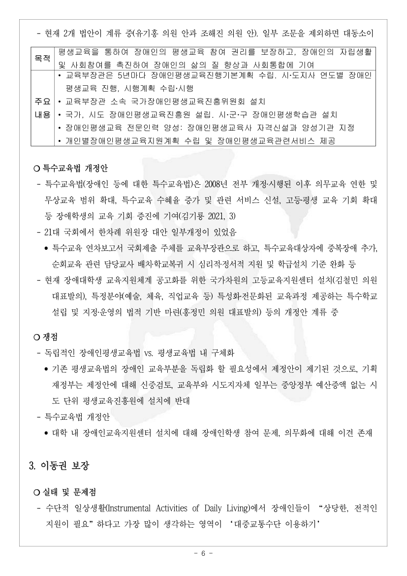 시민기본권으로서의 장애관련 입법 및 우선 추진과제