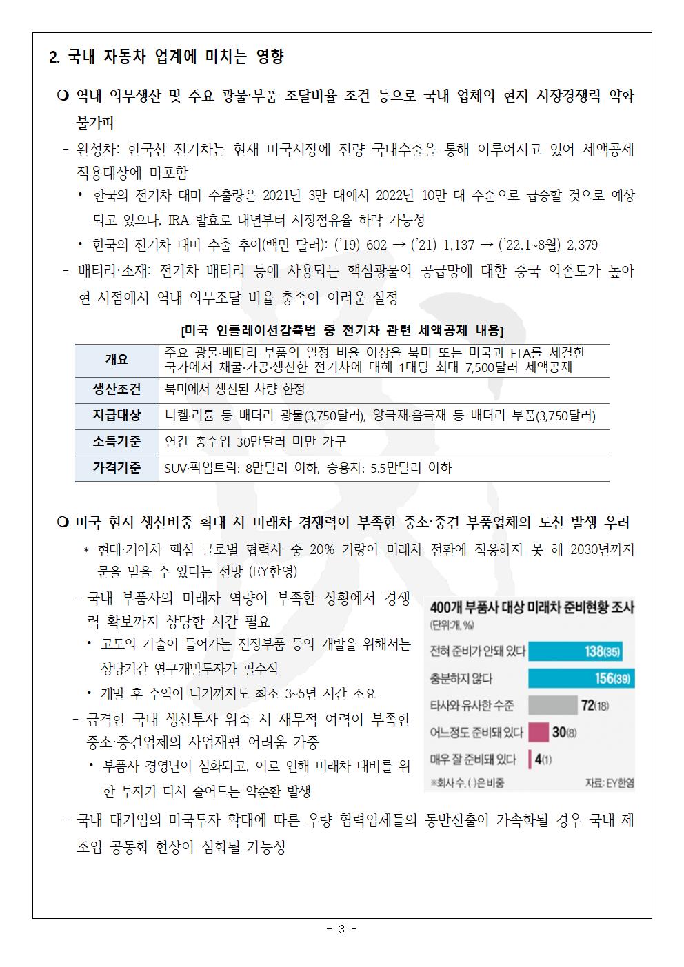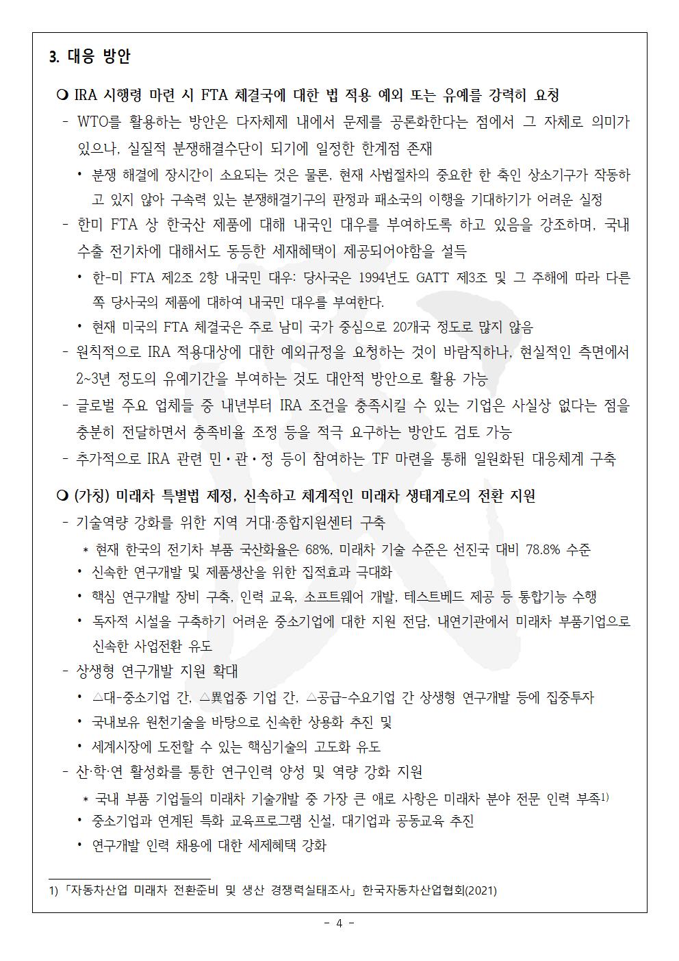 미국 인플레이션 감축법 전기차 보조금 규정에 대한 대응방안