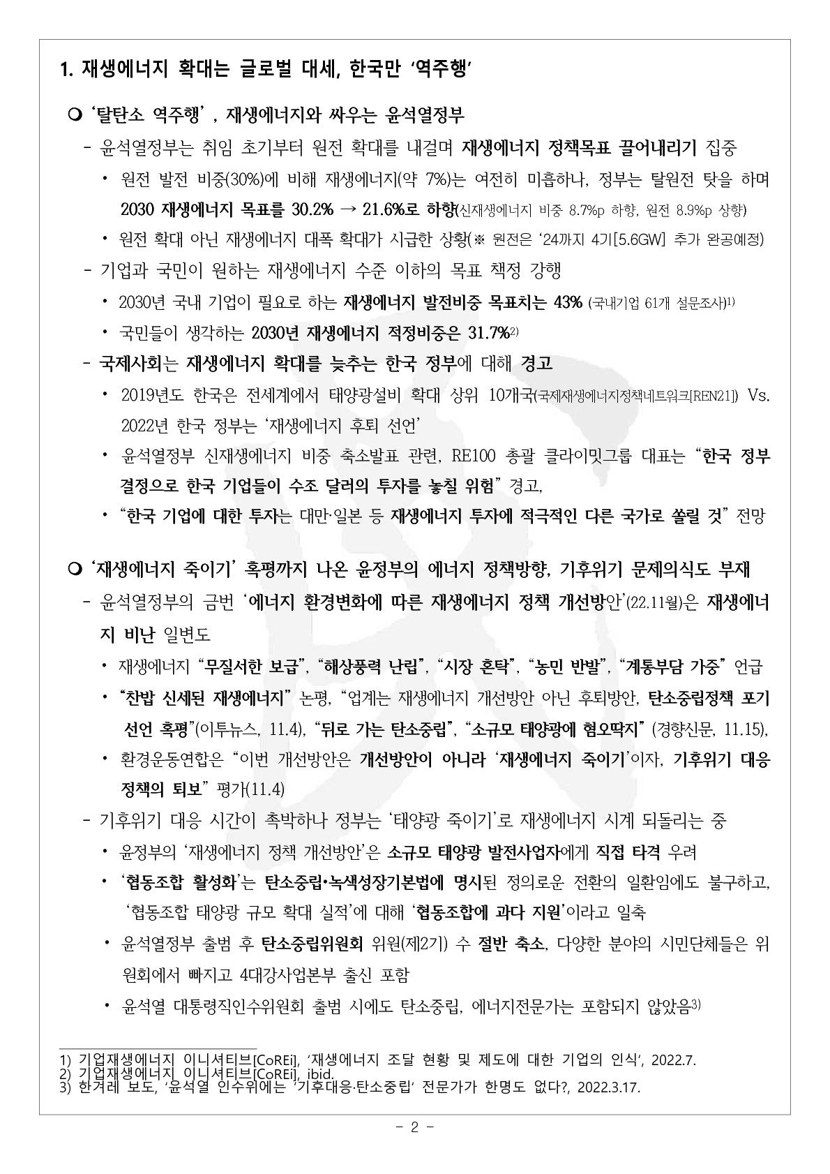 RE100 시대, 윤석열정부의 ‘재생에너지 역주행’