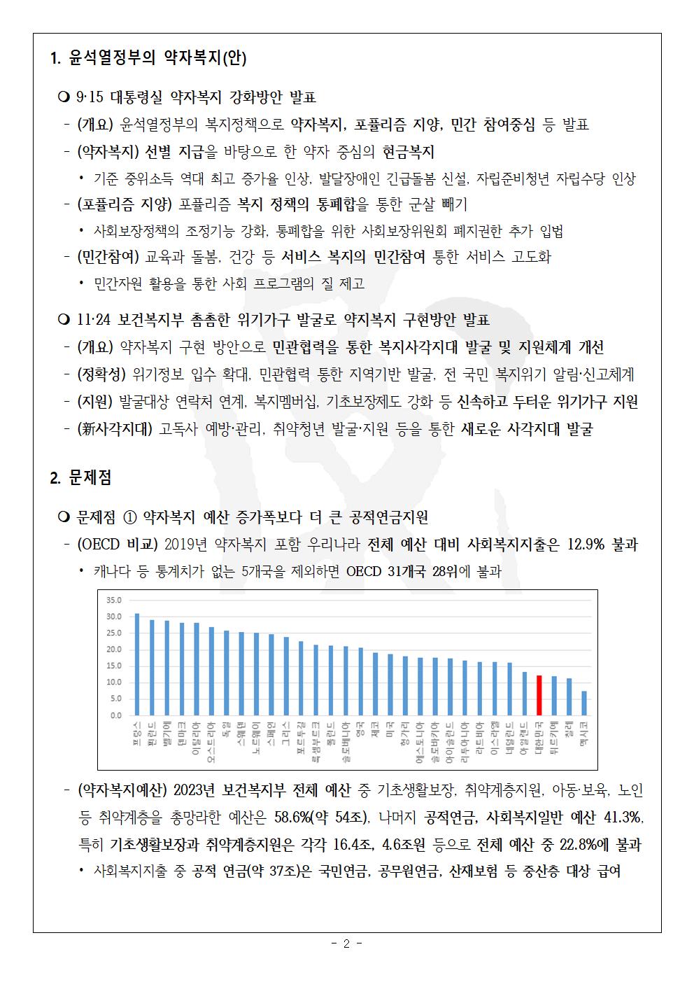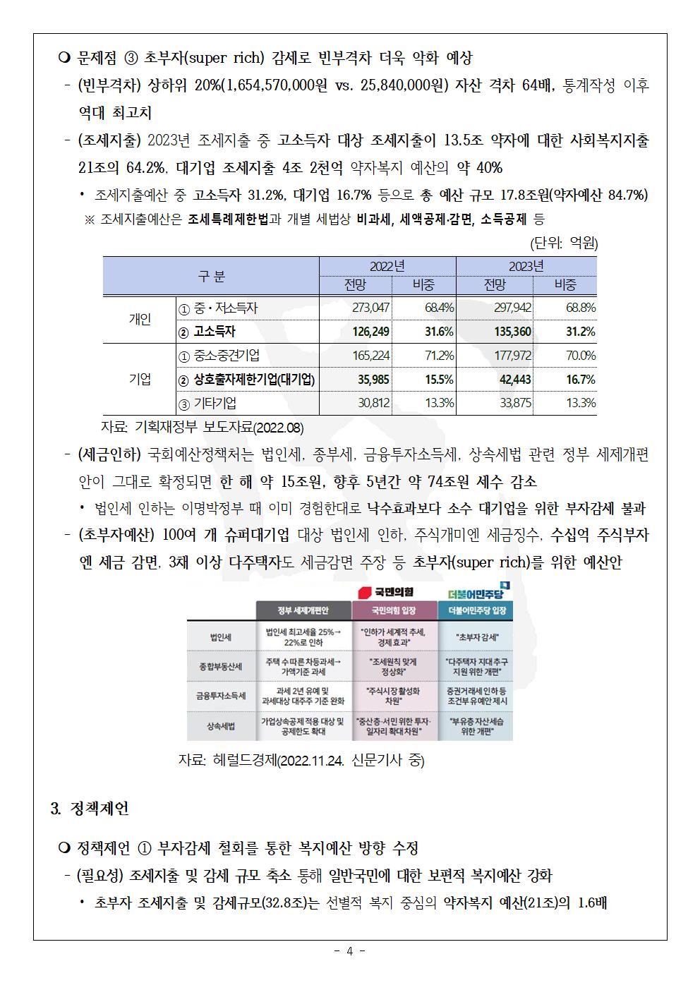 윤석열정부의 약자복지, 실상은 초부자(super rich) 감세를 통한 복지축소