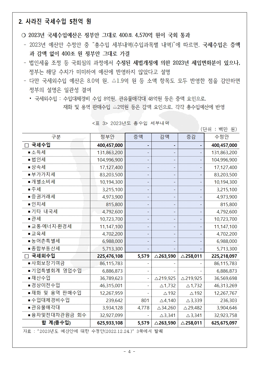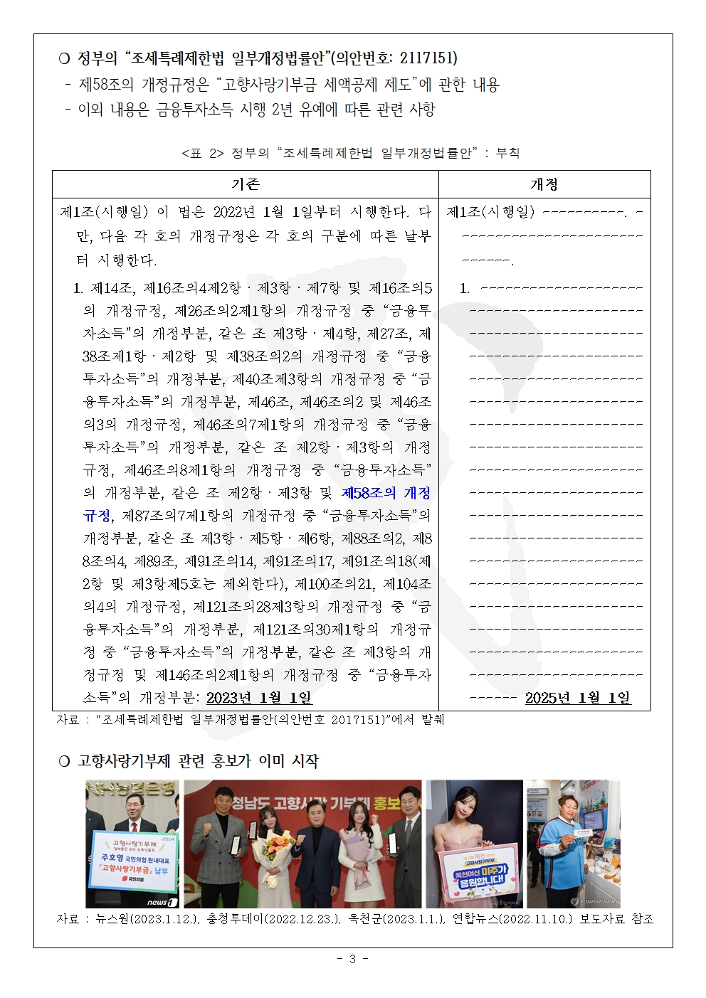 [2023-6호] 윤석열정부의 2가지 정책오류 : 사라진 고향사랑기부금 세액공제 및 국세 5천억