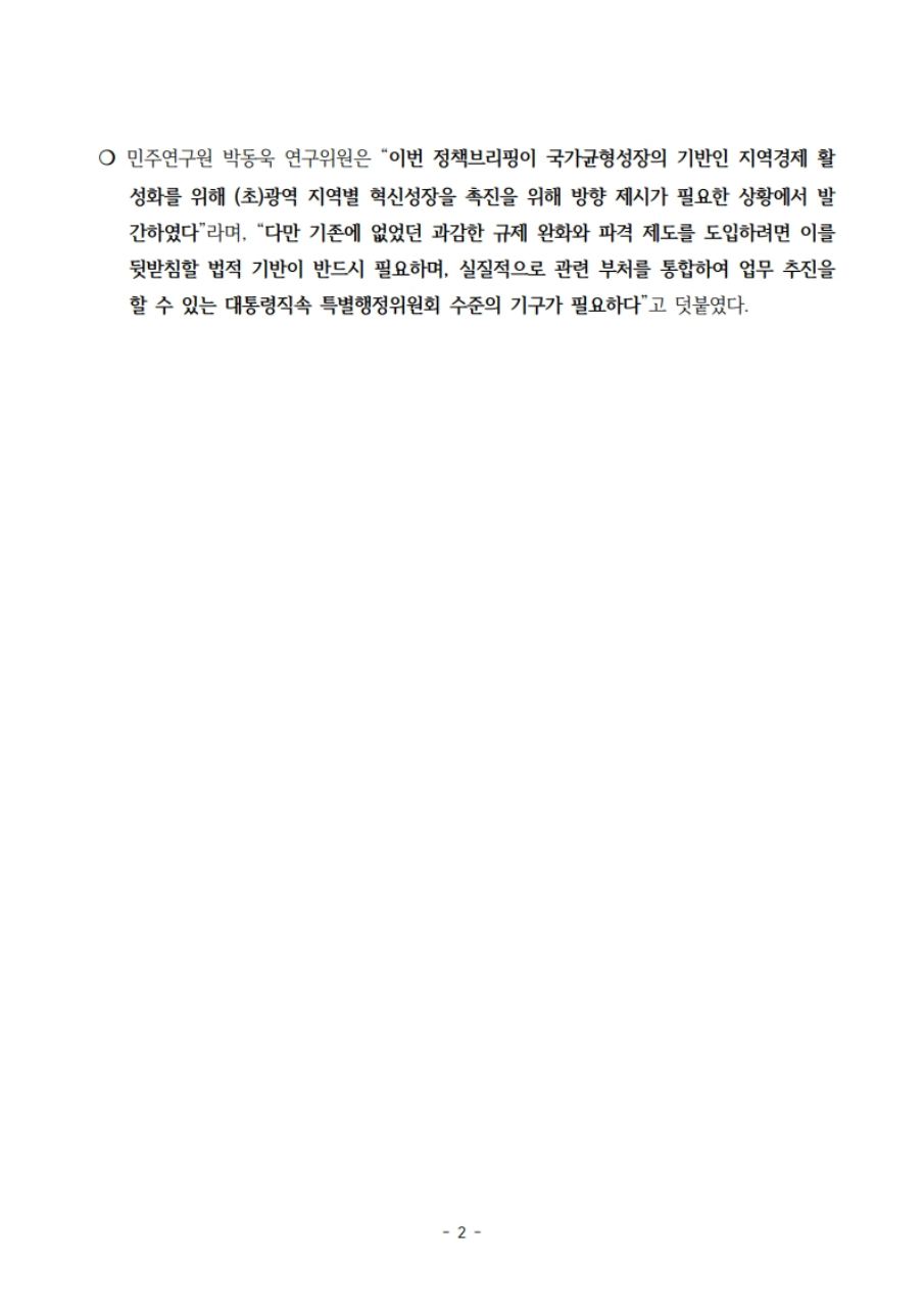 251216_민주연구원_보도자료_(정책브리핑 13호)_지역경제_혁신기반_구축을_위한_메가_샌드박스.hwp