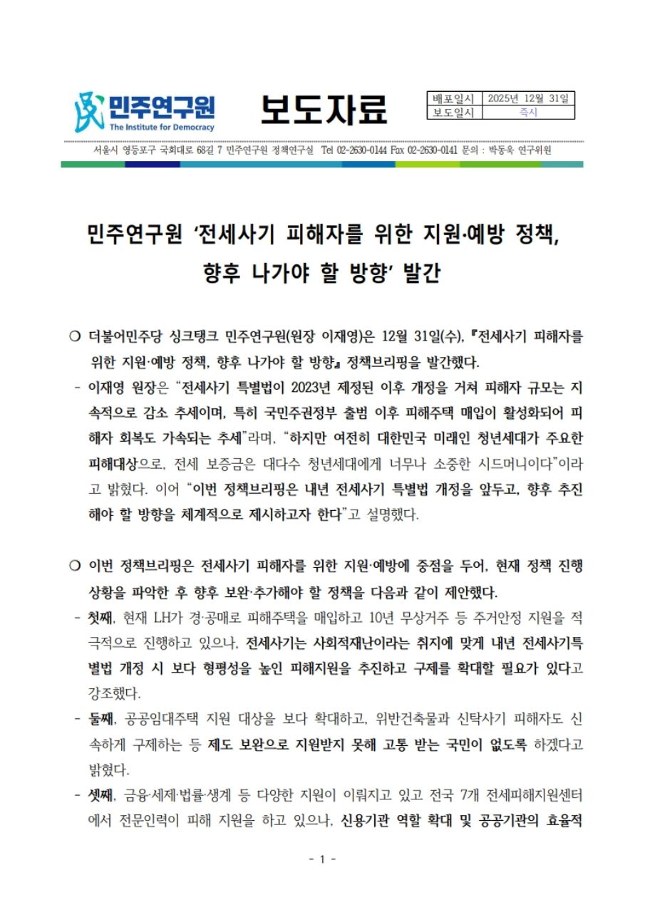 251231_민주연구원_보도자료_(정책브리핑 15호)_전세사기_피해자를_위한_지원·예방_정책_향후_나가야_할_방향.pdf