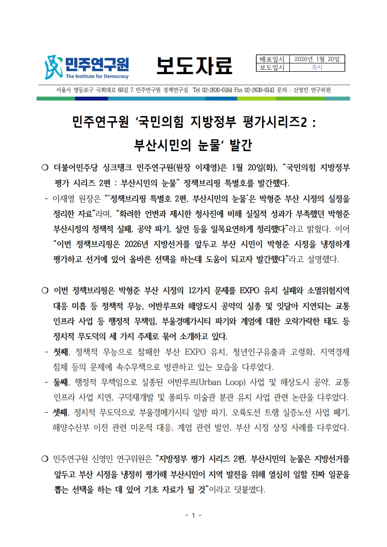260120_민주연구원_보도자료_(정책브리핑 특별호2)_국민의힘_지방정부_평가_시리즈_부산시민의 눈물.pdf