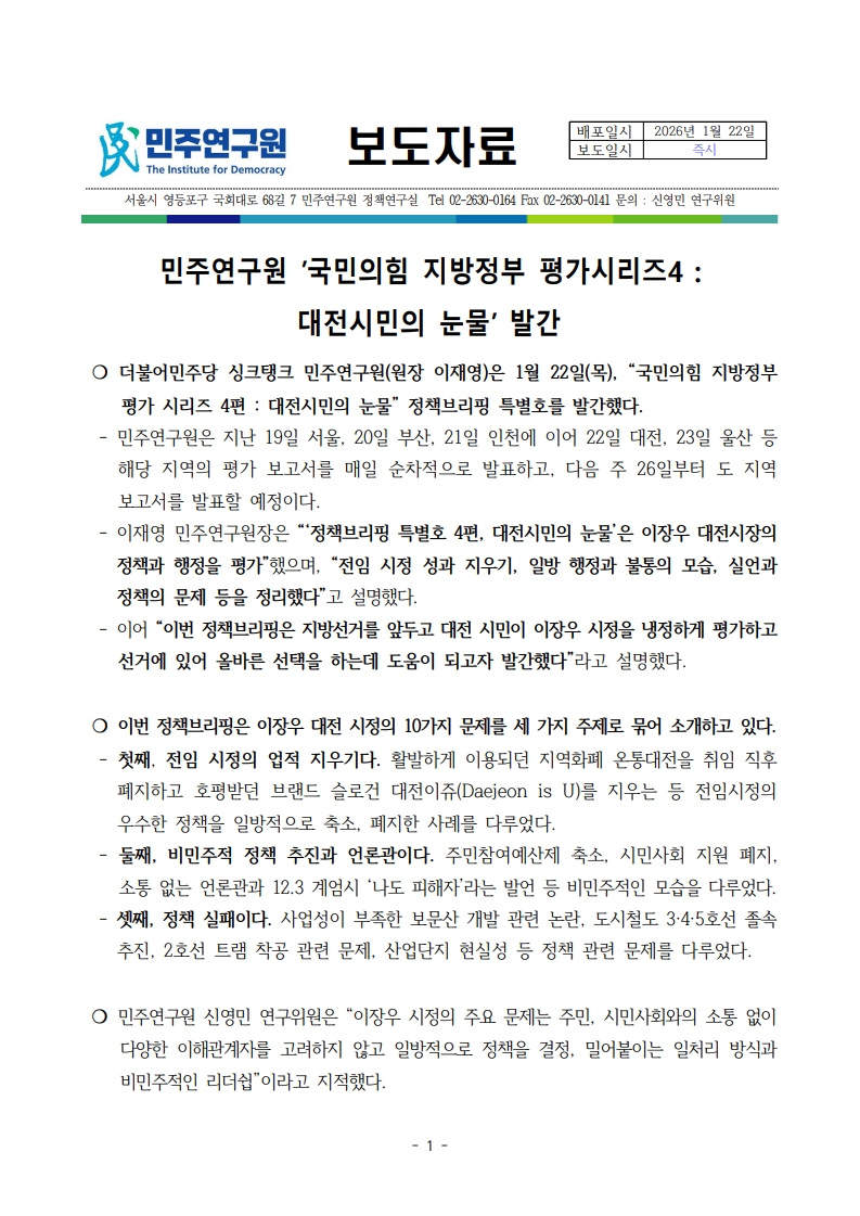 260122_민주연구원_보도자료_(정책브리핑 특별호4)_국민의힘_지방정부_평가_시리즈_대전시민의 눈물.pdf