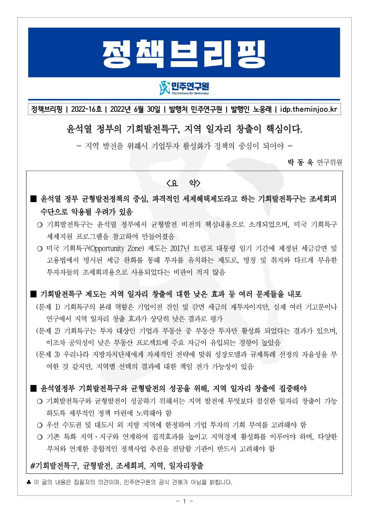 윤석열 정부의 기회발전특구, 지역 일자리 창출이 핵심이다